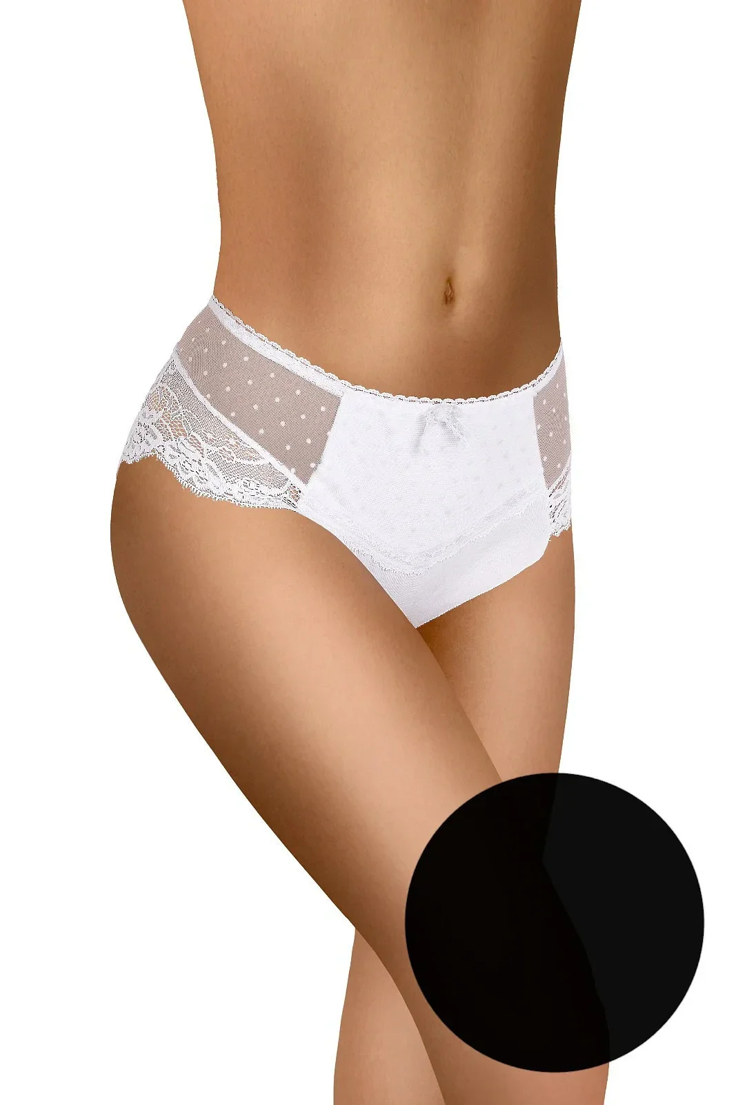 Pas modelu je ozdobený saténovou mašličkou. Zadní díl kalhotek je krajkový.