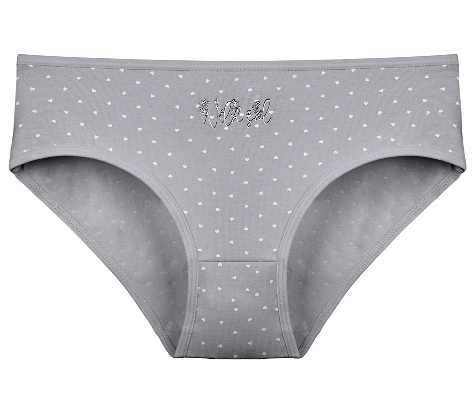 Dámské bavlněné kalhotky Natálka. Slušivé klasické kalhotky jsou pohodlným typem spodního prádla pro všechny příležitosti. Jsou zdobené drobnými srdíčky a nápisem. Obzvláště oceníte materiálové složení - 95% bavlna a 5% elasten. Použitý materiál je příjemný a poddajný na dotek.