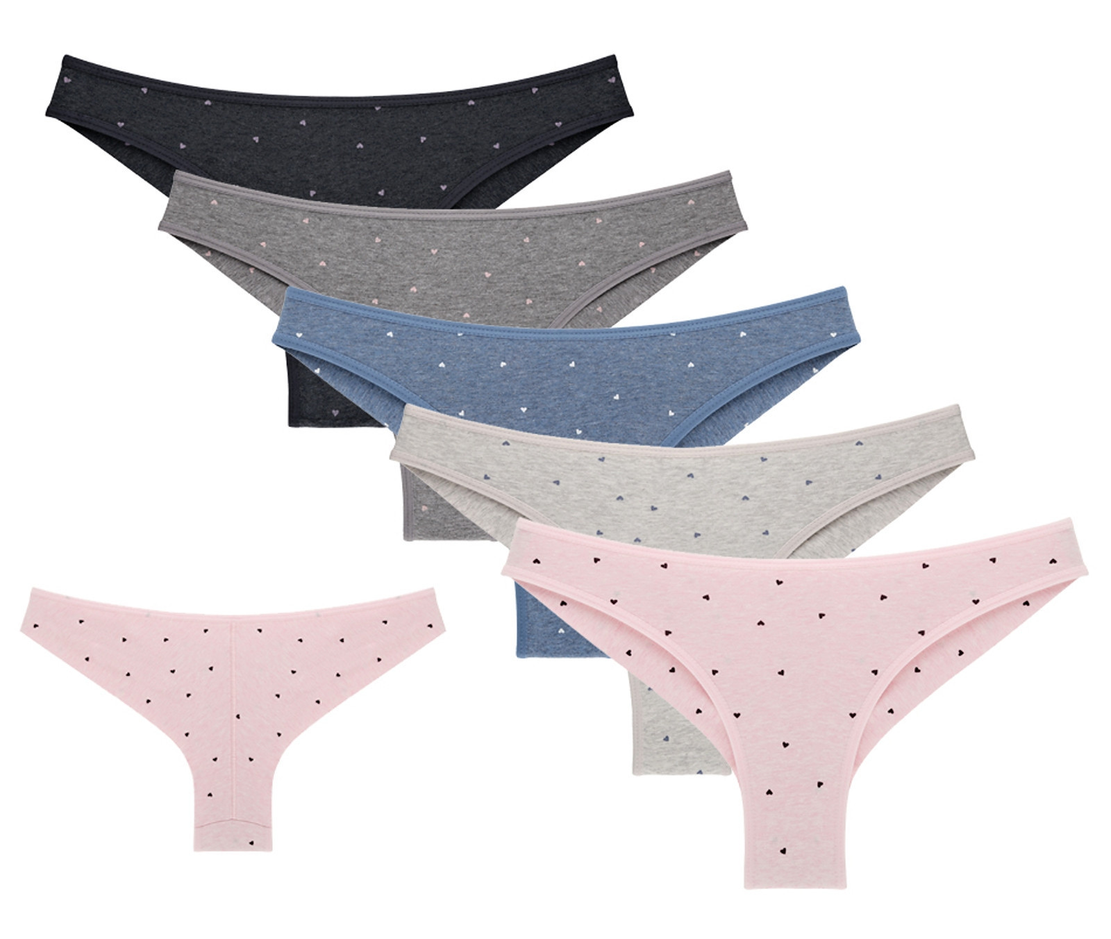 Dámské kalhotky brazilky Nicol. Kalhotky brazilky jsou moderní a zároveň i pohodlné, využijete je pro všechny příležitosti. Jsou zdobené drobnými srdíčky. Materiálové složení: 95% bavlna a 5% elasten. Použitý materiál je příjemný a poddajný na dotek.