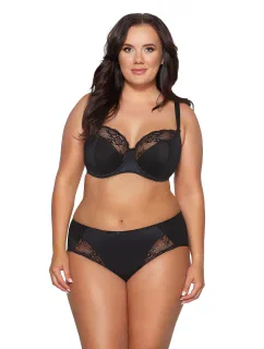 Černé kalhotky v provedení Exclusive - klasický střih, který dobře padne a zajišťuje plné pohodlí, doplněný stříbrnou výšivkou umístěnou na přední straně prádla, pod jemnou tylovou "síťovinou". Zadní strana je hladká, přední strana láká na působivé zdobení. Celek působí elegantně a smyslně. Tkanina obsahuje antimikrobiální látku (nevypírá se), která brání růstu bakterií a omezuje vznik zápachu. Je vhodná pro pokožku.