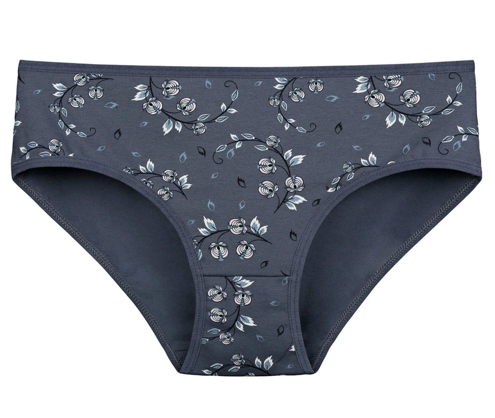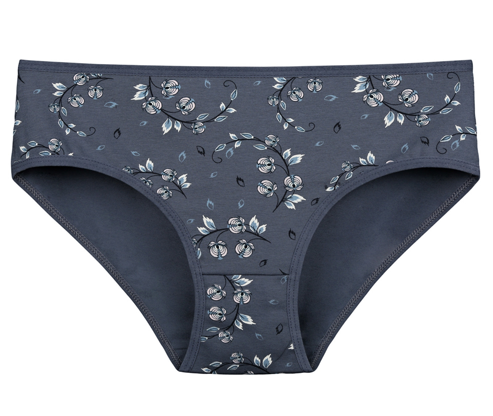 Dámské bavlněné kalhotky Olivia. Slušivé klasické vyšší kalhotky s květinovým potiskem jsou pohodlným typem spodního prádla pro všechny příležitosti. Obzvláště oceníte materiálové složení - 95% bavlna a 5% elasten. Použitý materiál je příjemný a poddajný na dotek.