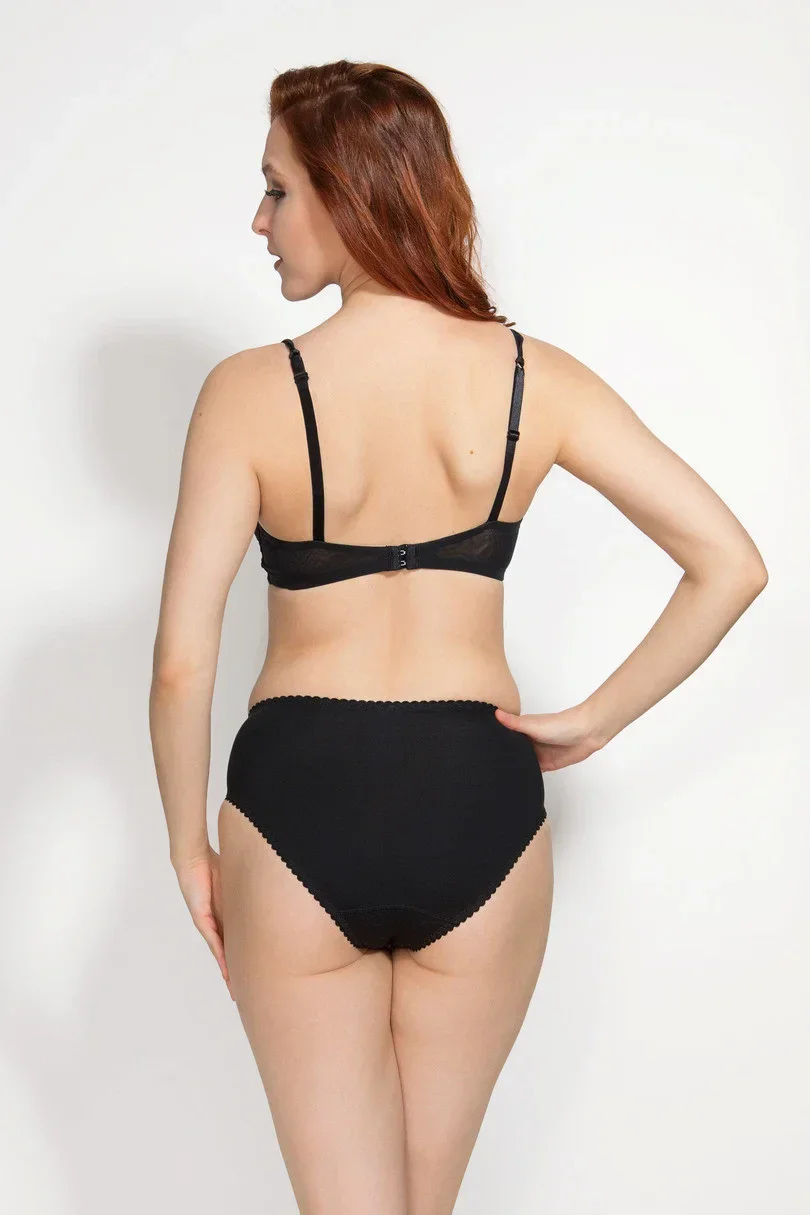 Díky dvojité vrstvě tkaniny ve přední části modelu kalhotky dokonale zplošťují bříško. Model je ideálně vypasovaný a při nošení je pohodlný a komfortní díky obsahu lycry.