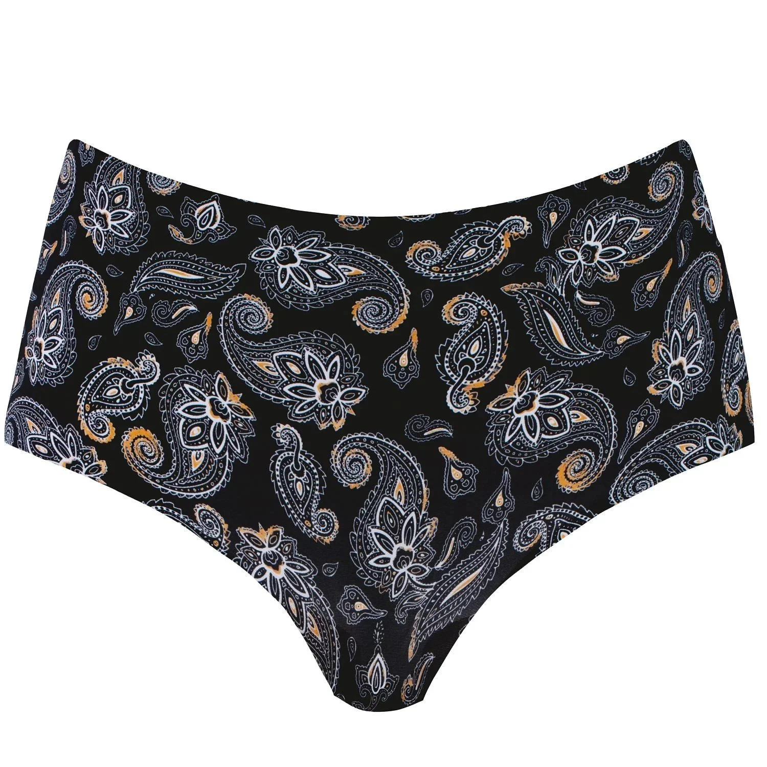 Dámské kalhotky Paisley maxi JULIMEX - černá barva - z vysoce jakostní tkaniny - se vzorem - vyšší pas - širší boky - technologie INVISIBLE LINE na ultratenké okraje - řezané laserem - neviditelné pod oblečením