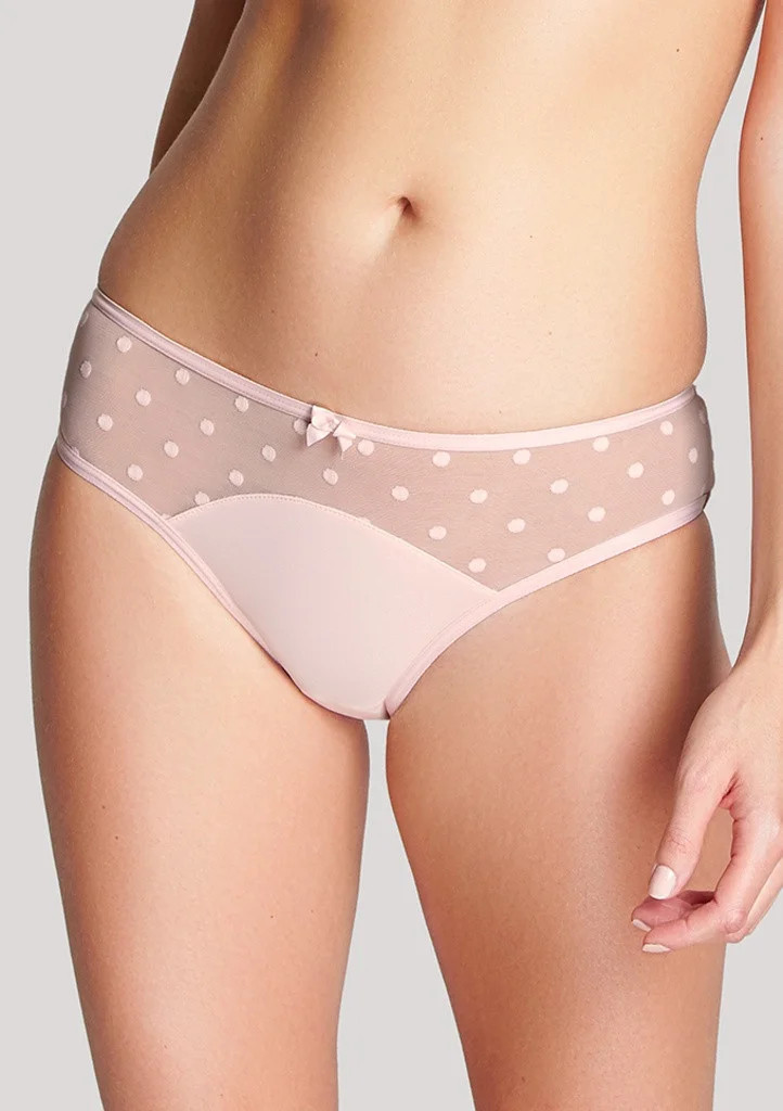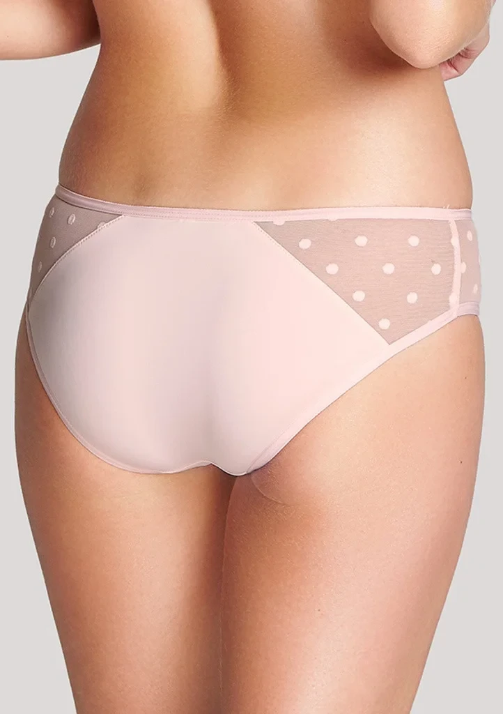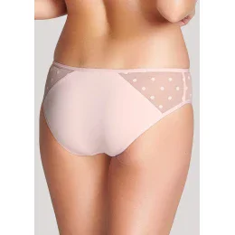 Dámské kalhotky Cleo klasického střihu od firmy Panache jsou součástí hezké a hravé kolekce. Po bocích a vpředu jsou kalhotky zdobeny pružným šifonem s puntíky.Kalhotky je vhodné kombinovat s podprsenkou 9511 ze stejné kolekce.