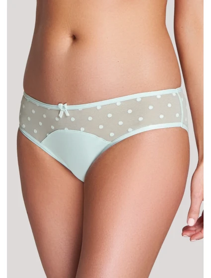 Dámské kalhotky Cleo klasického střihu od firmy Panache jsou součástí hezké a hravé kolekce. Po bocích a vpředu jsou kalhotky zdobeny pružným šifonem s puntíky.Kalhotky je vhodné kombinovat s podprsenkou 9511 ze stejné kolekce.