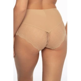 Figi damskie z wysokim stanem uszyte z gładkiej mikrofibry, obszyte koronką. Niewidoczne pod ubraniem, doskonale przylegają do ciała. W opakowniu znajdują się w dwie sztuki.
