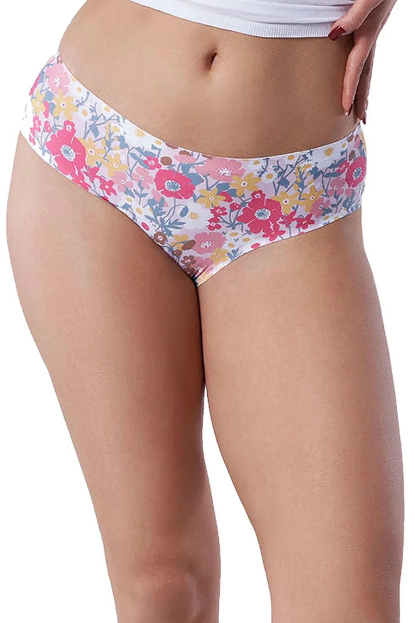Dámské kalhotky Pastel Dream classic JULIMEX - bílá barva - se vzorem květin - z mikrovlákna - vyšší pas - technologie INVISIBLE LINE na ultratenké okraje - řezané laserem - neviditelné pod oblečením