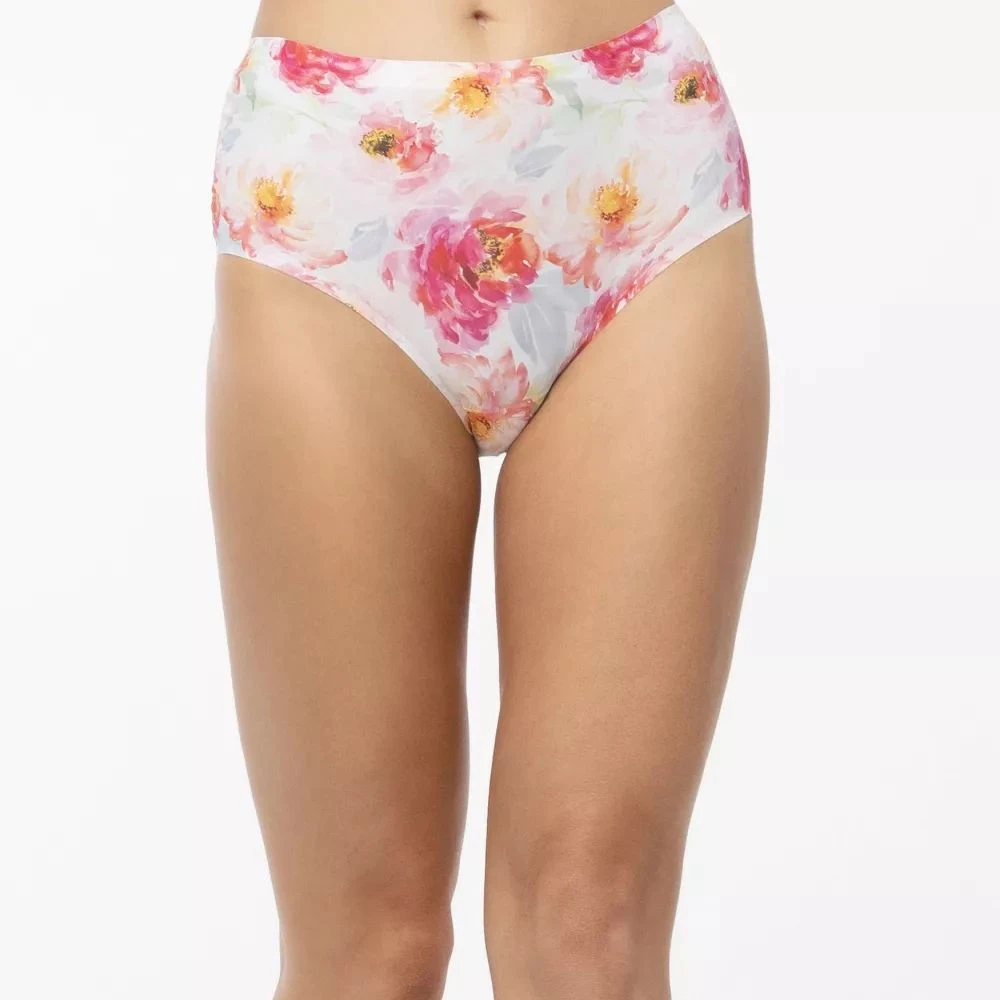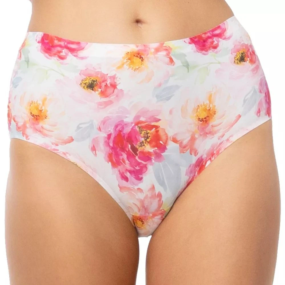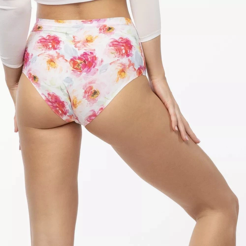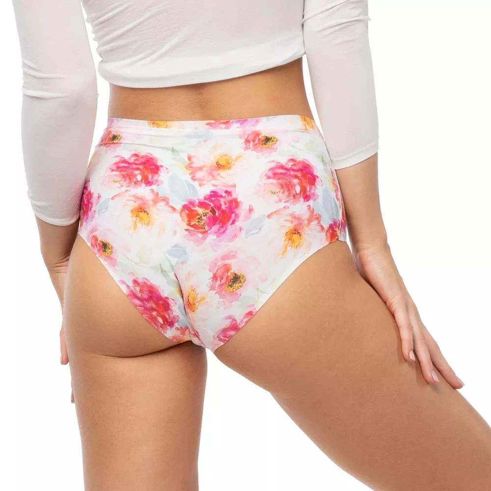 Dámské kalhotky Peony simple maxi JULIMEX - bílá barva - barevný potisk - střižené laserem - bezešvé - široké boky