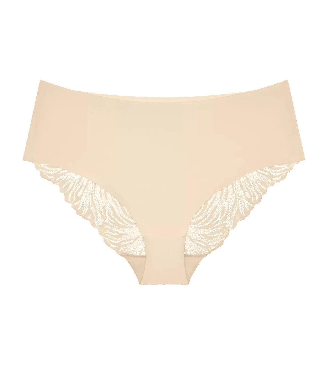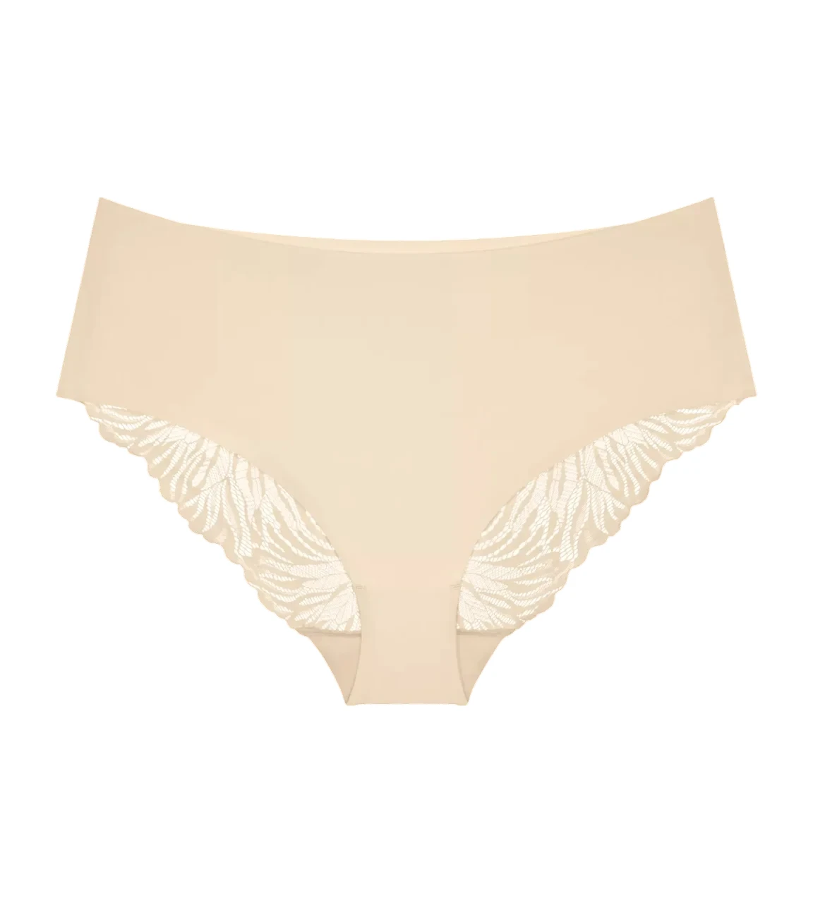 Hedvábně hebká tkanina doplněná elegantní krajkou. Tyhle maxi kalhotky jsou ženské a zároveň funkční. Rovným dílem.