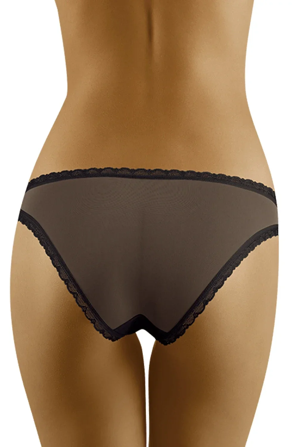 Dámské kalhotky Riva black Wol-bar - černá barva - na přední straně nádherně dekorované krajkou - vzadu jsou hladké a smyslně transparentní - velmi příjemné na nošeníMateriálové složení: 90% polyamid + 10% elastan