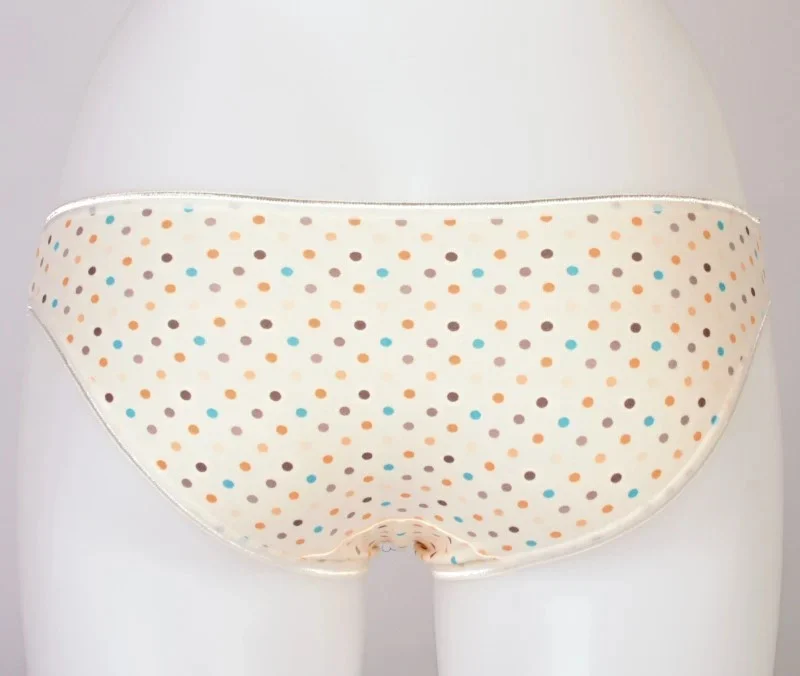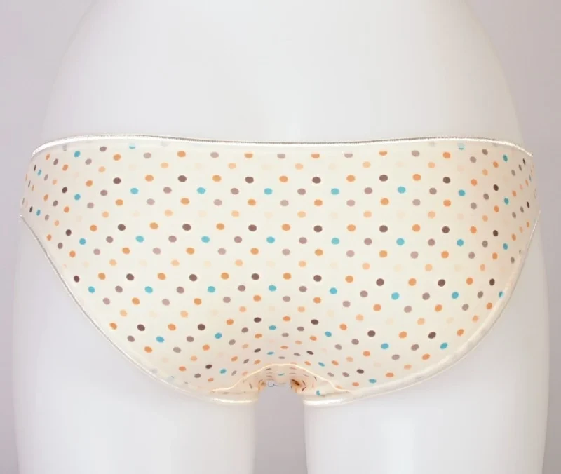 Dámské kalhotky Róza. Kalhotky jsou potištěny barevným puntíkem.