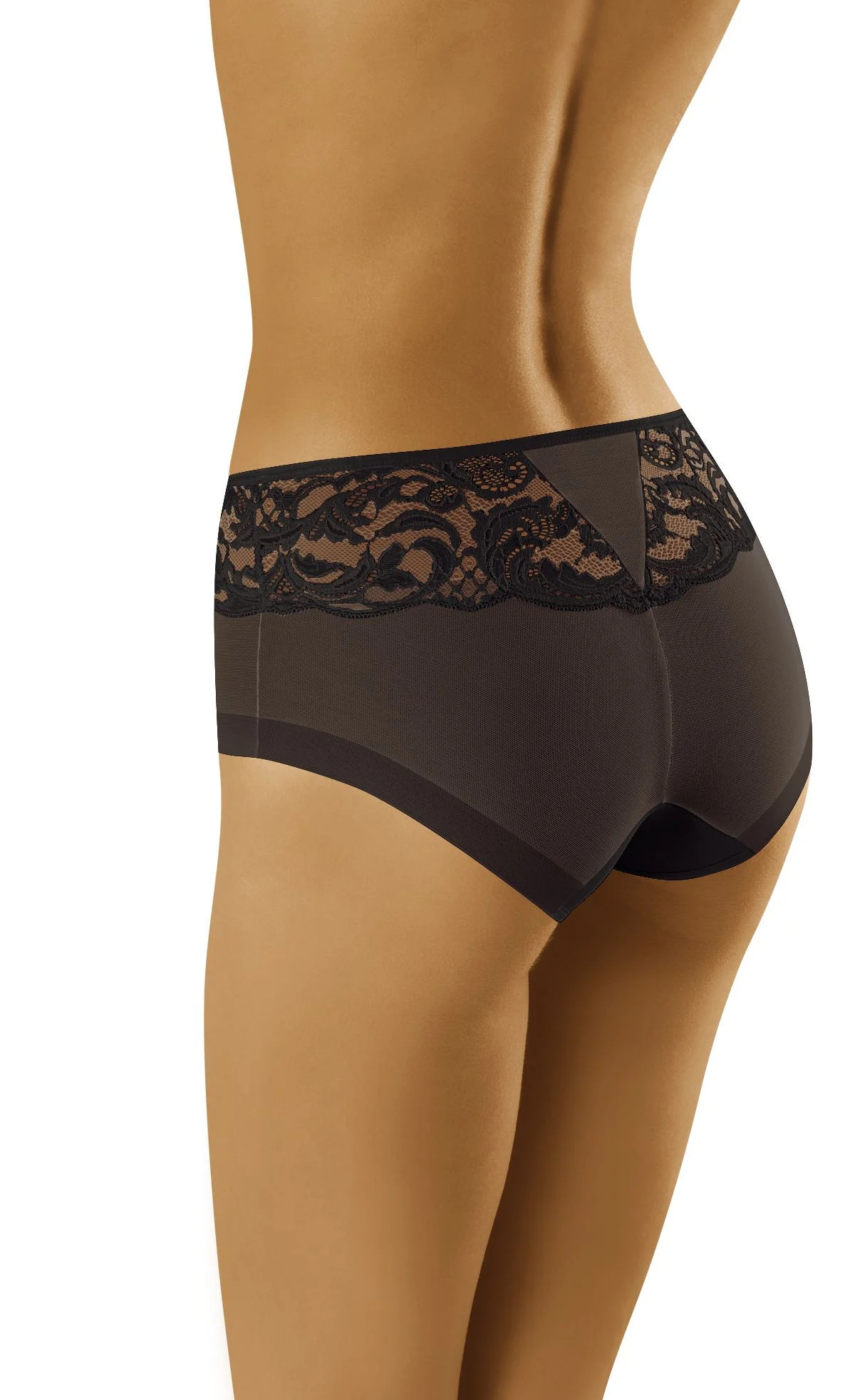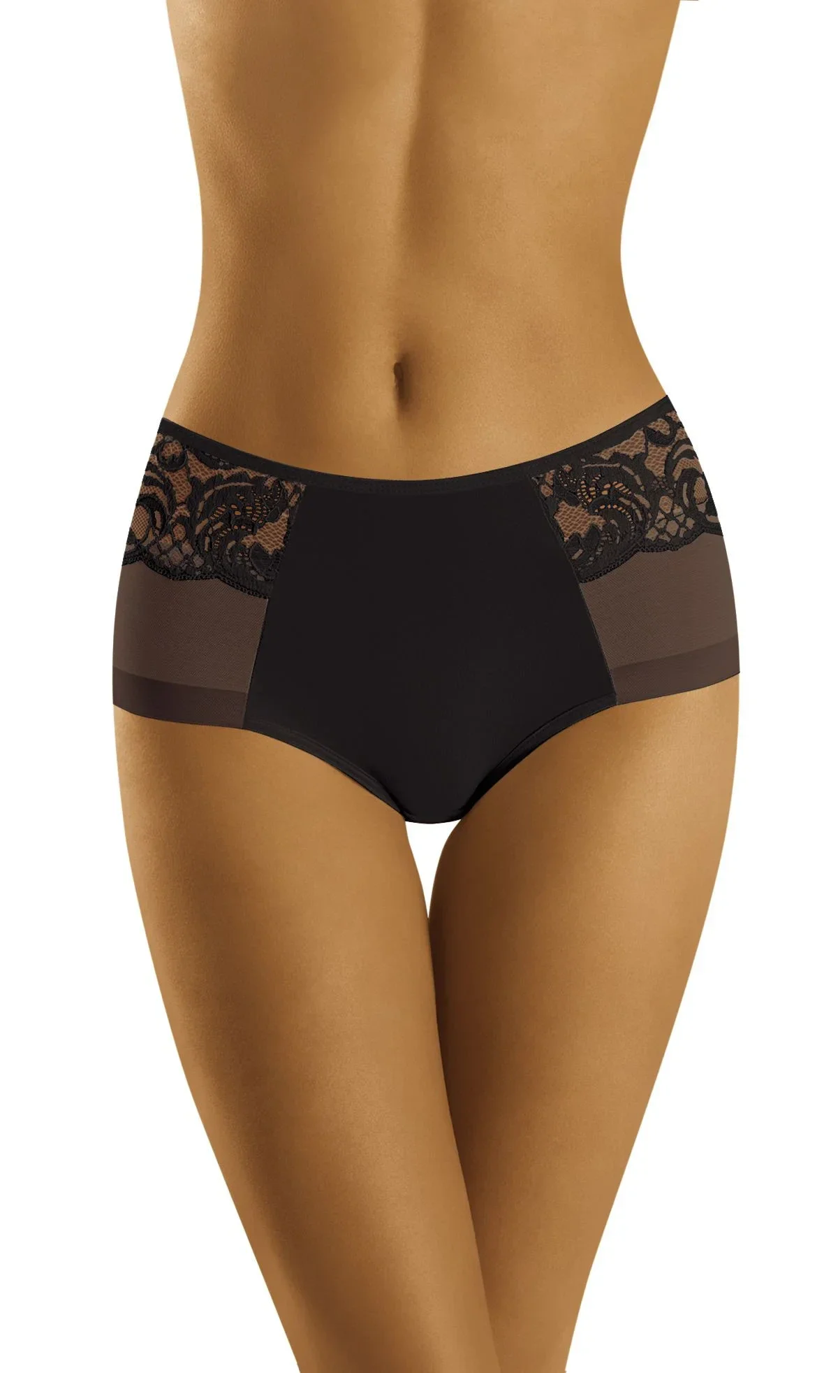 Krásné, ženské kalhotky z kombinace jemné síťoviny, krajky a hladkého mikrovlákna. Mírně plnější střih, tvarově výrazné podání. 83 % polyamid, 17 % elastan.