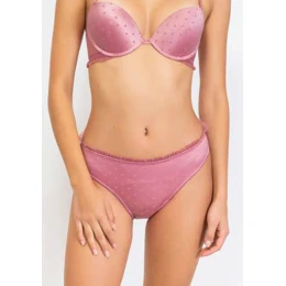 Jemné dámské kalhotky v černé barvě zaujmou decentním vzorem drobných srdíček a čistým, nadčasovým designem. Příjemný materiál se pohodlně přizpůsobí postavě a zajistí komfort po celý den. Jednoduchý střih s jemnými lemy je ideální pro každodenní nošení a snadno se kombinuje s podprsenkou ve stejném stylu. Skvělá volba pro ženy, které preferují pohodlí spojené s nenápadnou elegancí.