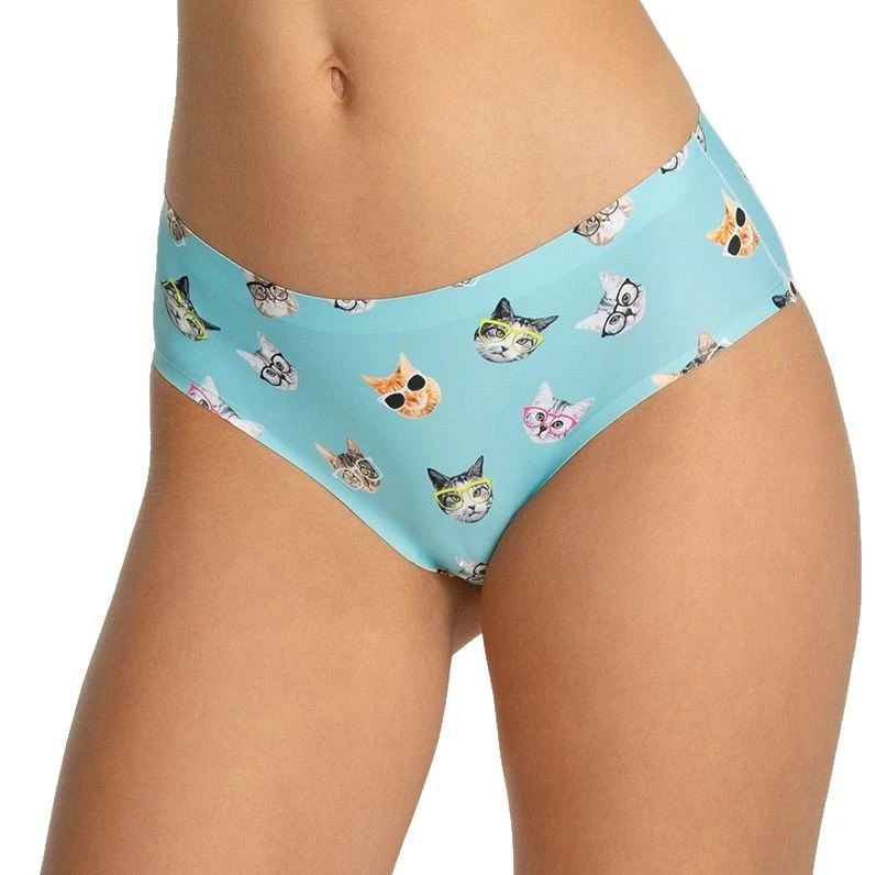 Dámské kalhotky Simple classic cats JULIMEX - světle modrá barva - z vysoce jakostní tkaniny - se vzorem - technologie INVISIBLE LINE na ultratenké okraje - řezané laserem - neviditelné pod oblečením