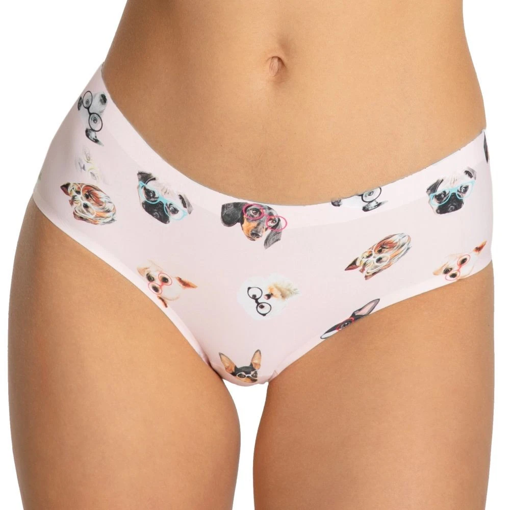 Dámské kalhotky Simple classic dogs JULIMEX - růžová barva - z vysoce jakostní tkaniny - se vzorem - technologie INVISIBLE LINE na ultratenké okraje - řezané laserem - neviditelné pod oblečením