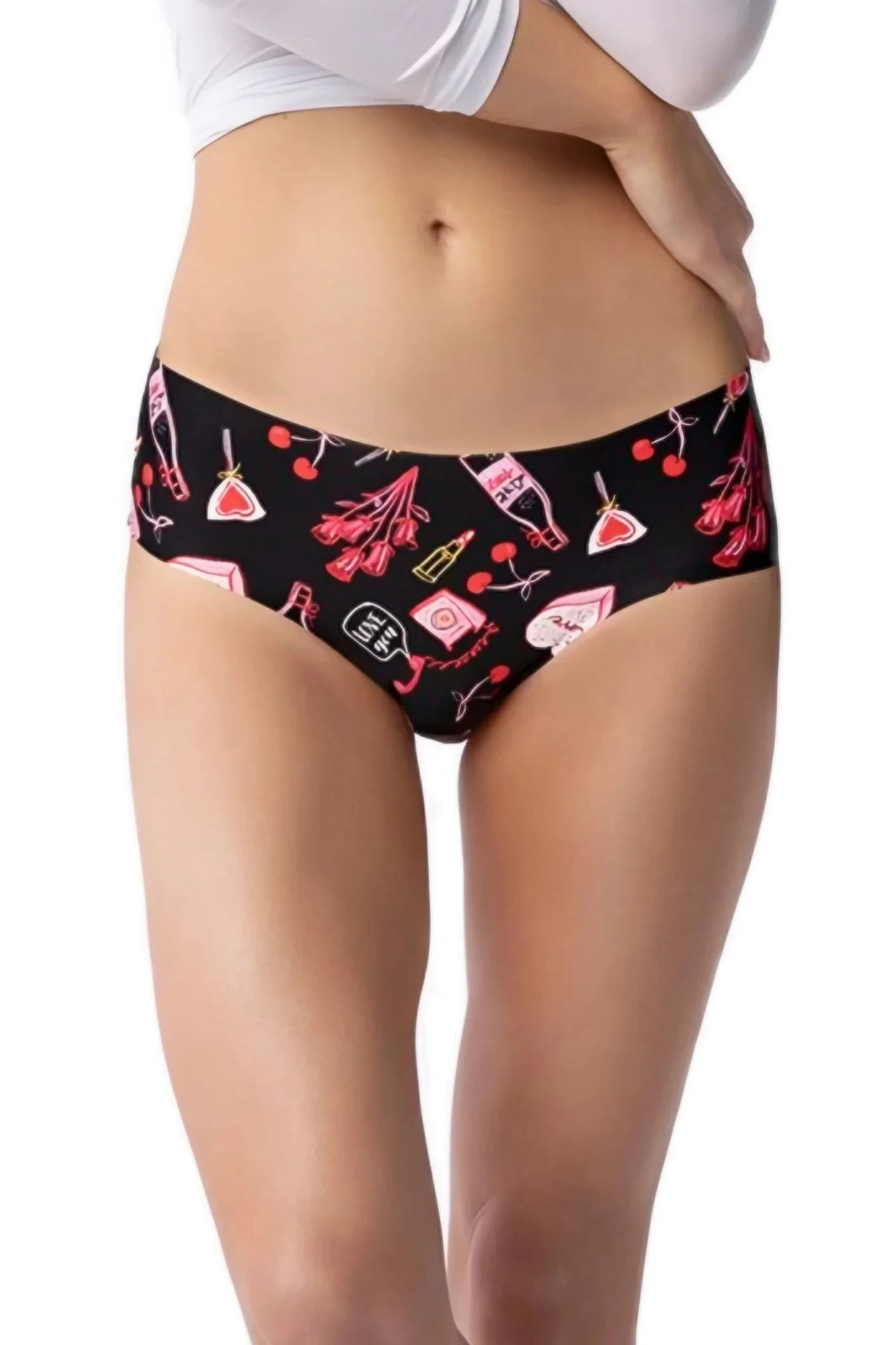 Dámské kalhotky Simple Love story JULIMEX - černá barva - z velmi kvalitního mikrovlákna - bezešvé - s potiskem - klasický střih - lehce zvýšený pas - klín je podšitý bavlnou - valentýnská kolekce