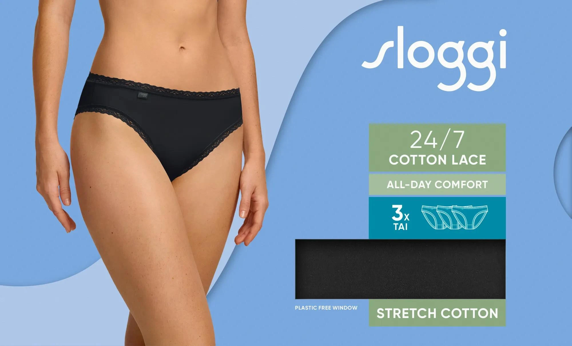 Přidání recenze k Dámské kalhotky sloggi 24/7 Cotton Lace Tai C3P - černé - SLOGGI