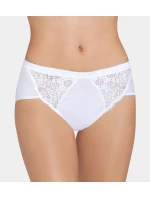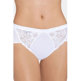 Kalhotky jsou při nošení pohodlné a nepřekáží v pohybu. Střih typu midi je charakteristický pro kalhotky bokovky s pohodlnými širšími boky. Přední díl modelu bohatě zdobí pružné krajkové vsadky. Díky pohodlné stabilní pružné pásce v pase jsou kalhotky perfektně vypasované.