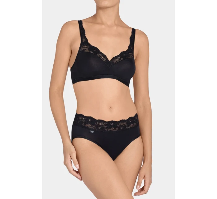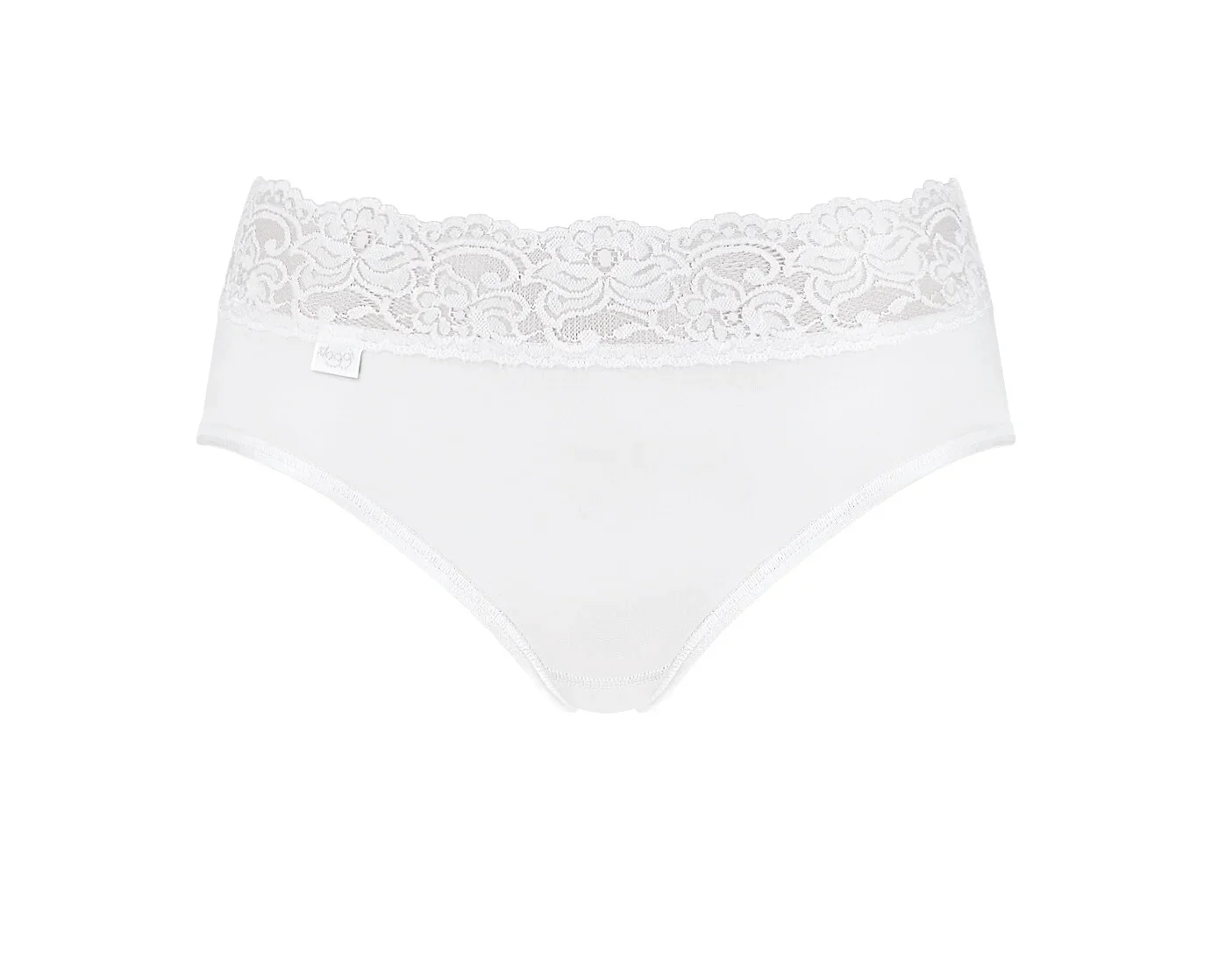 Kalhotky z neobyčejně pohodlné kolekce Romance značky Sloggi vás okouzlí širokou krajkou táhnoucí se kolem pasu.