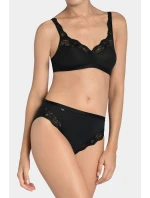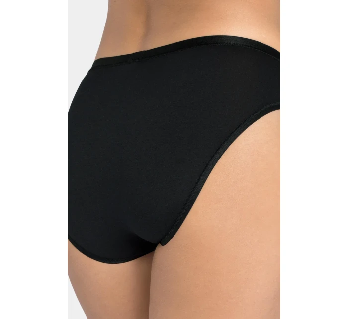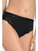 Dámské kalhotky klasického střihu ušité z příjemného, lehce elastického materiálu. Po bocích jsou ozdobné krajkové vsadky s květinovým motivem. V rozkroku je všita látková vsadka.