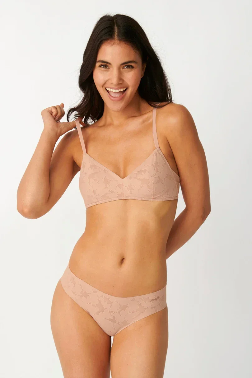 Kalhotky jsou z poloviny krycí a mají úzké boky. Model zdobí jemný žakárový vzor. Pěkná plochá krajková tkanina dodává kolekci jemný vzhled. Kalhotky jsou bezešvé.