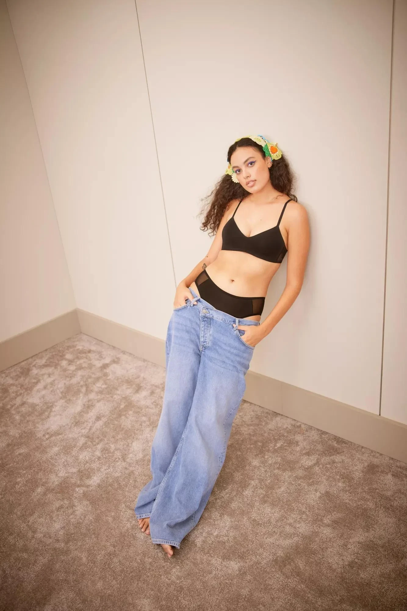 - Naše modelka má na sobě úzké kalhotky tanga velikosti S