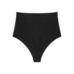 - Modelka má na sobě kalhotky string s vysokým pasem ve velikosti S