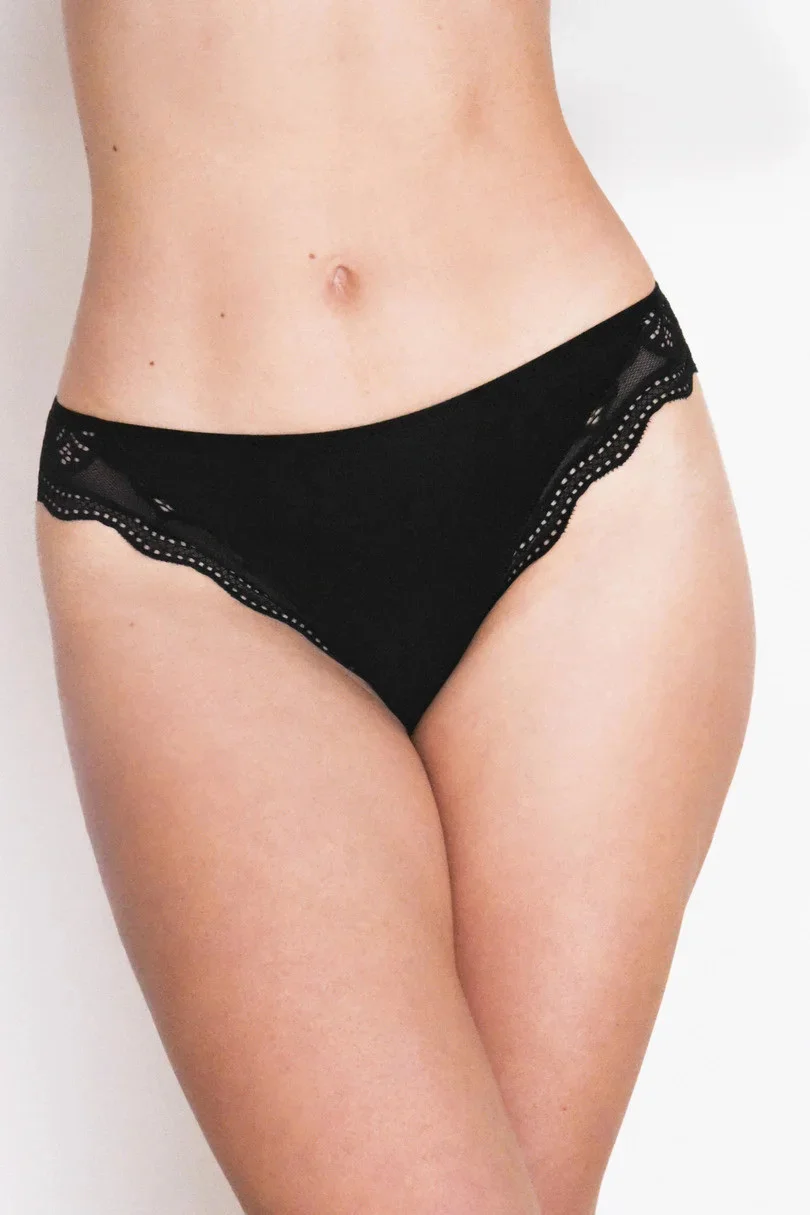 Přední i zadní díl kalhotek zdobí krajka.