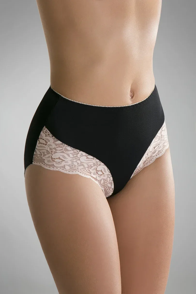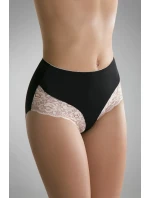 Pohodlné kalhotky ušité z kvalitní a příjemné látky. Mají elegantní kPunčochové kalhotyové všivky. Krásně kopírují pozadí a vyšší střih modeluje bříško. Díky své propracovanosti nijak nestahují. 85% polyamid, 15% elastan.