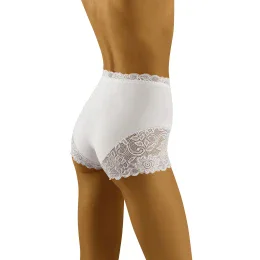 Kombinace ženskosti a pohodlí: vyšší střih, krajkové nohavičky, krajkové lemování v pase... Tyto šortky byly vytvořeny pro ženy, které ocení spodní prádlo s vyšším, postaveným střihem. Jsou pohodlné a komfortní, jemně tvarují postavu. Přední i zadní díl - hladký. 87 % polyamid, 13 % elastan.