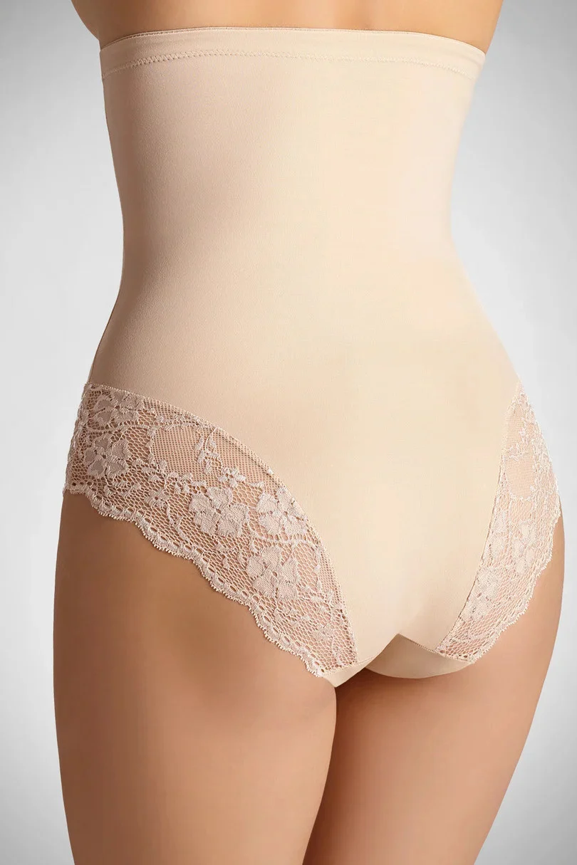 Korigující kalhotky s vysokým pasem z vysoce kvalitního mikrovlákna, nohavičky zakončené krajkou. Lem je zakončen silikonem, který zabraňuje sklouzávání spodního prádla.