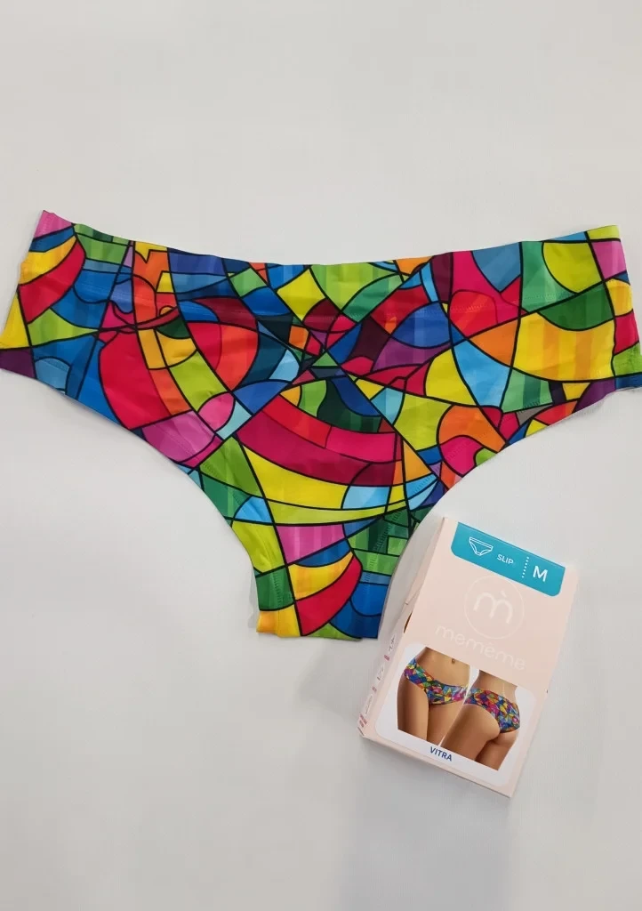 Kalhotky od firmy MEMÉME zaujmou nápaditým a mladistvým potiskem a jsou určeny pro každou ženu, nebo dívku, kterou baví móda a design. Kalhotky jsou laserově střiženy a obšity plochými švy pro dokonalou kopii Vašich křivek. Pro zvýšení komfortu je uprostřed všitý bavlněný klínek.