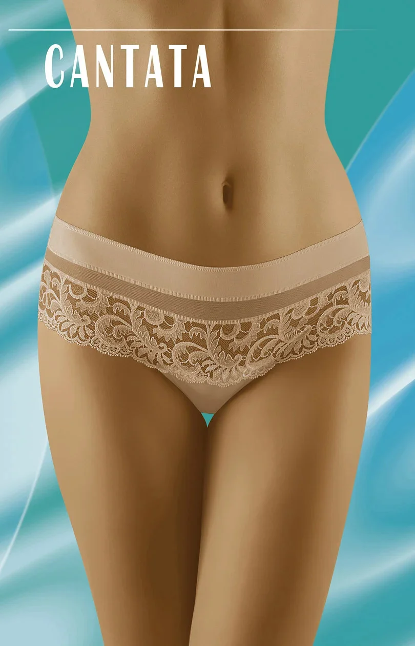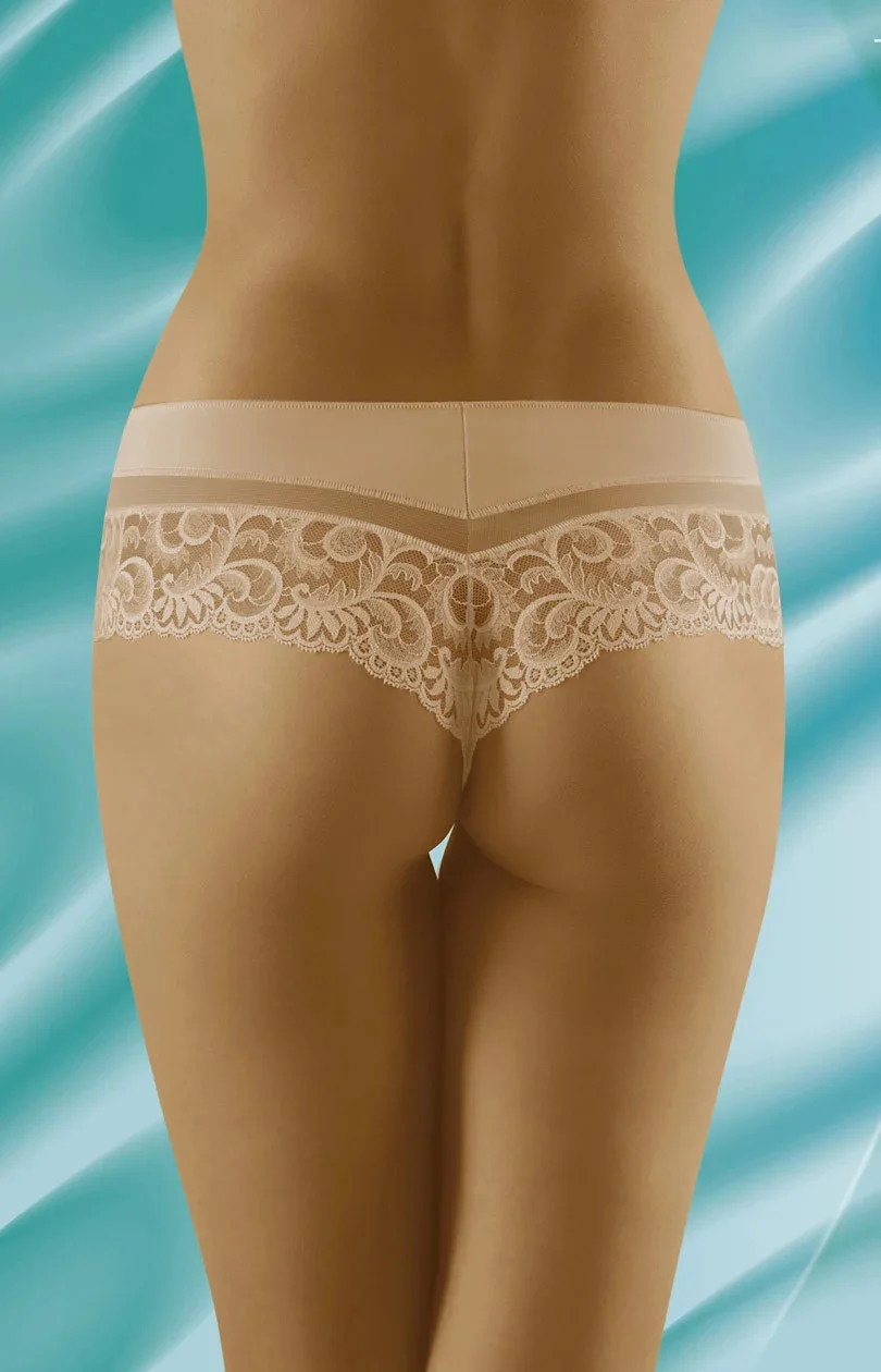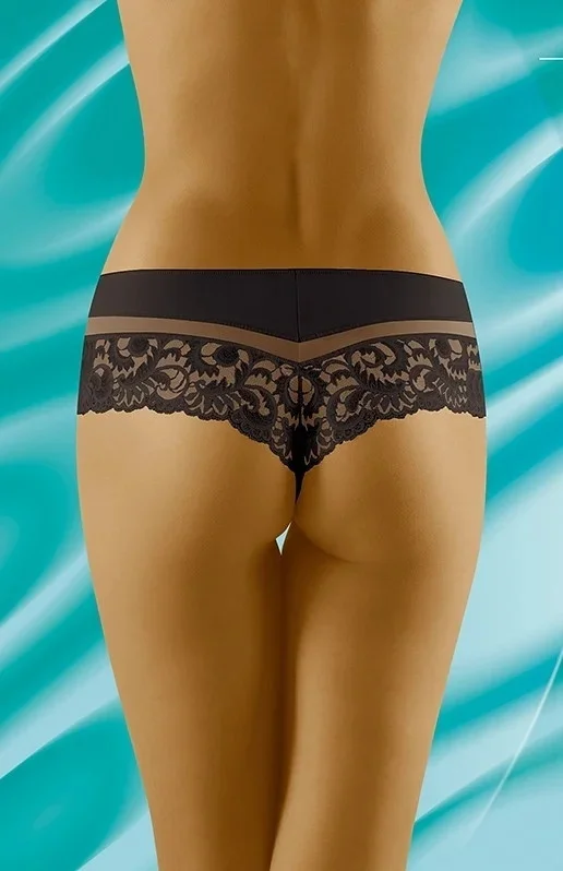 Dámské kalhotky (kombinace kalhotek string a šortek), které jsou vyrobené z mikrovlákna, síťovinového pásu a efektní krajky s květinovým motivem.