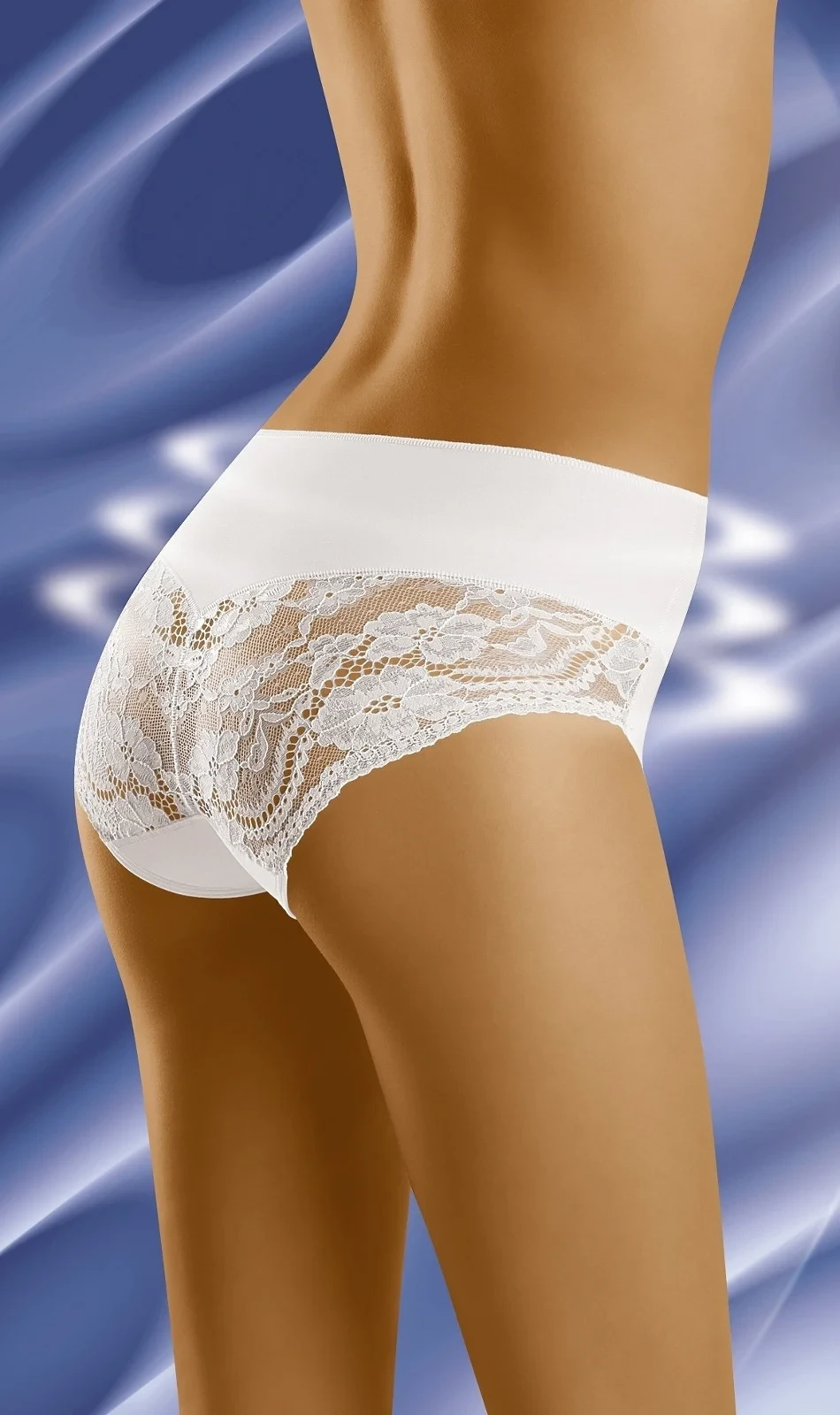 Dámské kalhotky z mikrovlákna, zadní část dekoruje ažurová krajka s květinovým motivem, horní linie hladká.