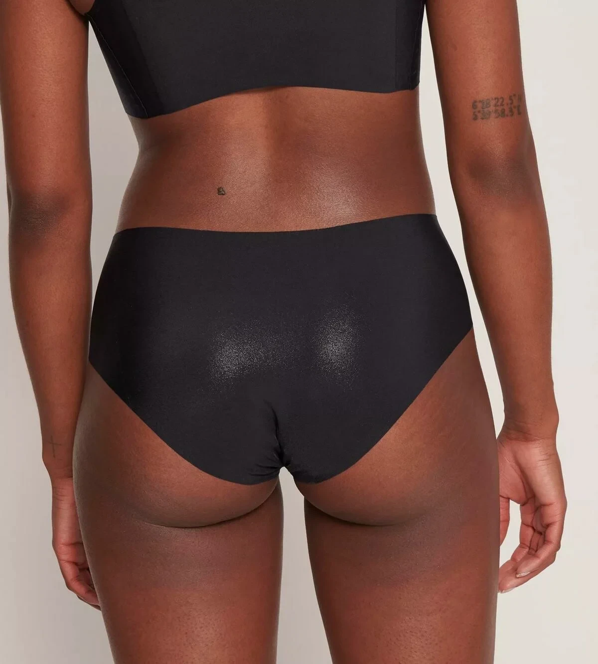 - Naše modelka má na sobě bokové kalhotky velikosti S
