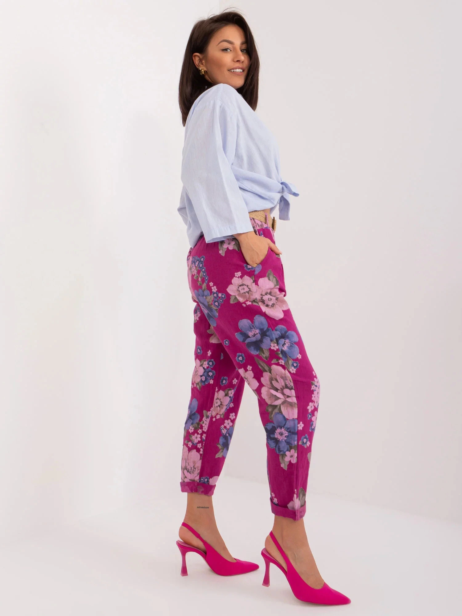Dámské kalhoty DHJ SP 1365.89 Fialová s květy - FPrice