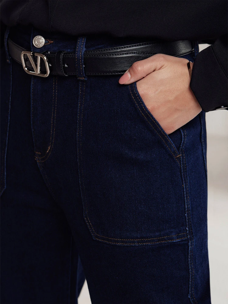 Dámské kalhoty FITZONE denim cargo tmavě modré FashionStreet UY2243