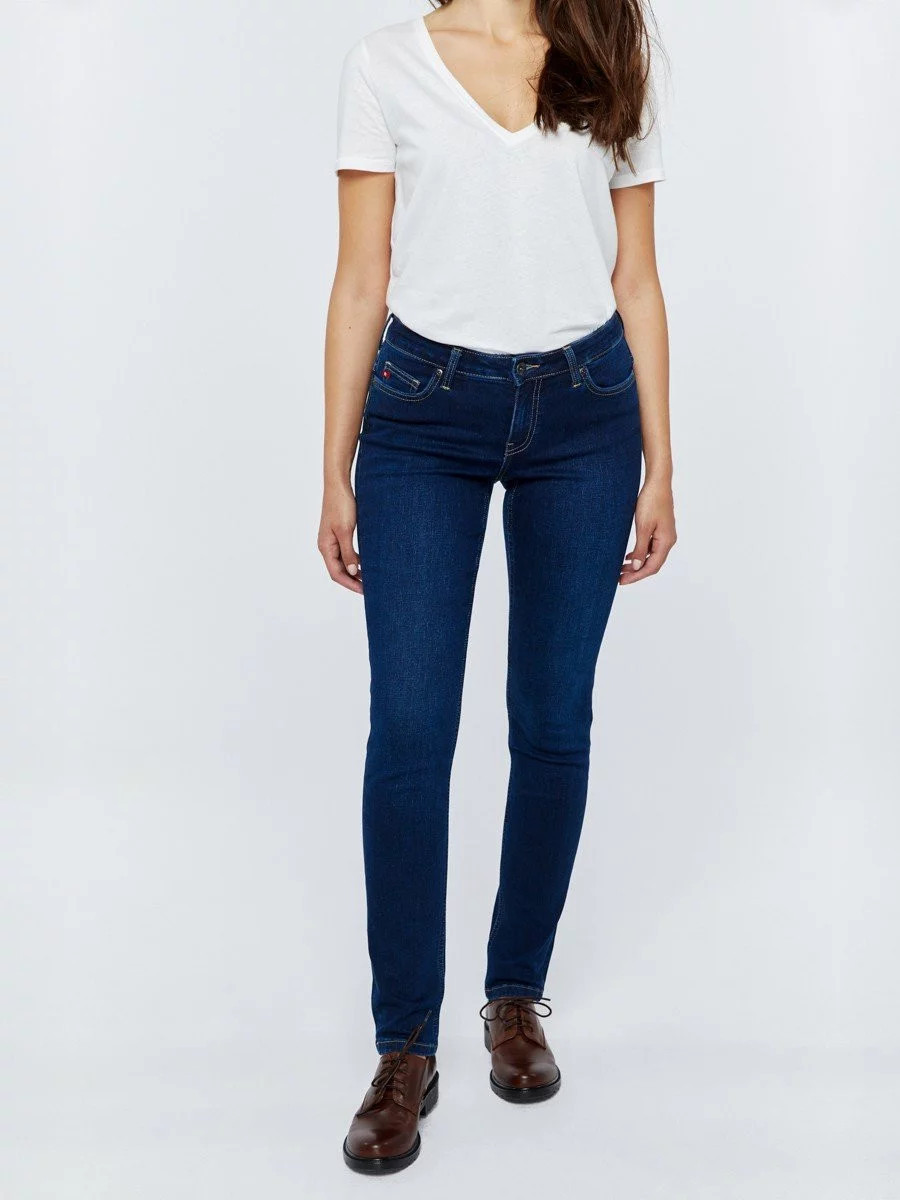 módní design křivek pro dokonale zvýrazněnou siluetu vysoký pas, zúžené nohavice, pět kapes, poutka na opasek, značková nášivka na zadní straně přiléhavý střih, pravidelný střih v pase