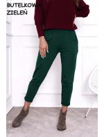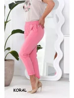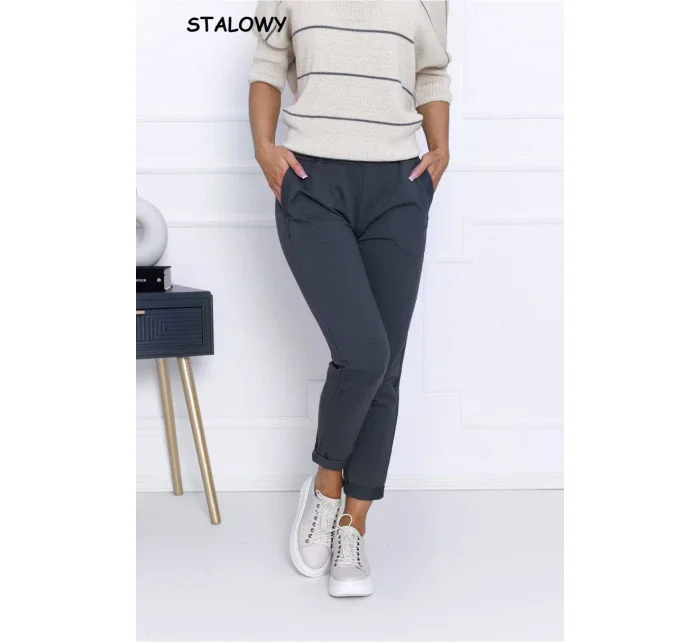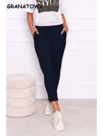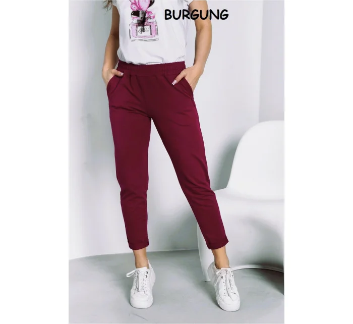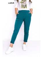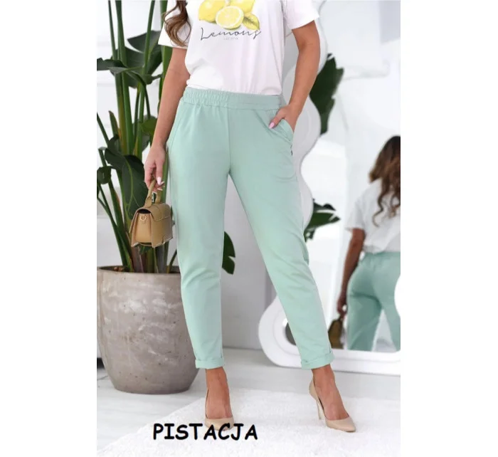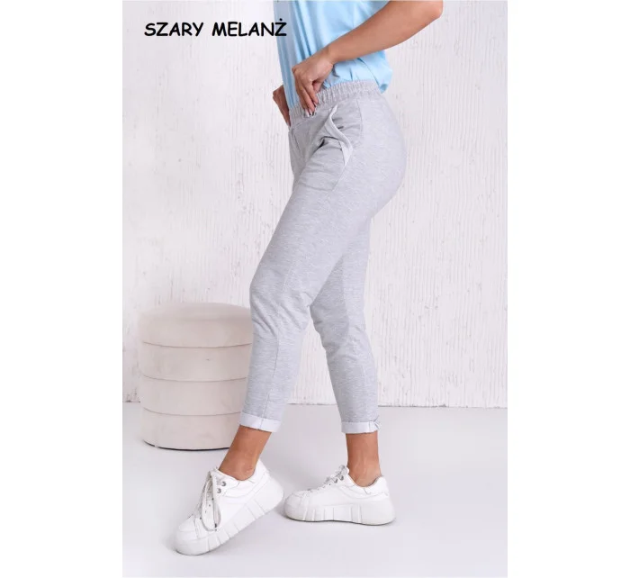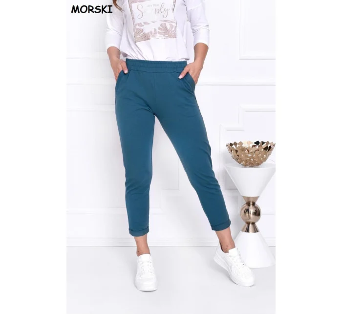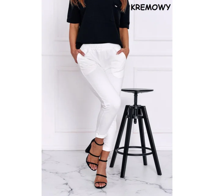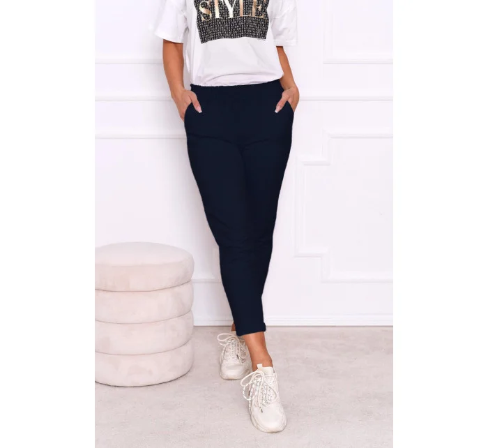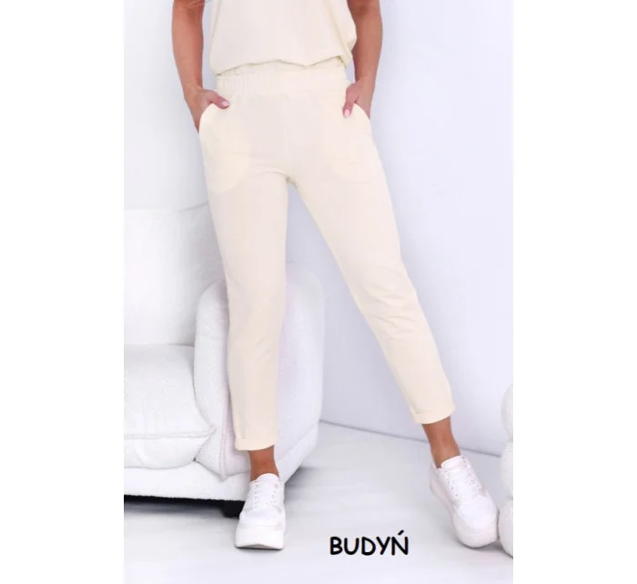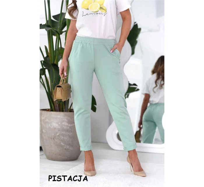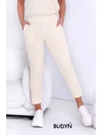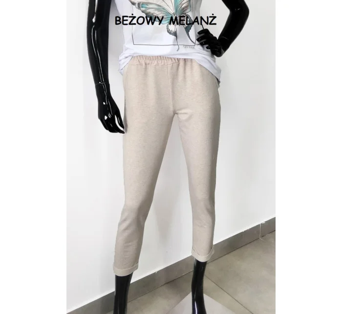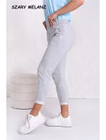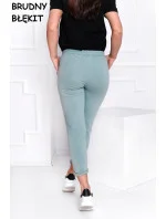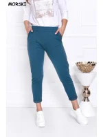 Kalhoty mají nohavice v 7/8 délce. Spodní okraj nohavic je ohrnutý. Ve přední části modelu jsou dvě kapsy. Zadní díl kalhot je hladký.