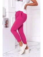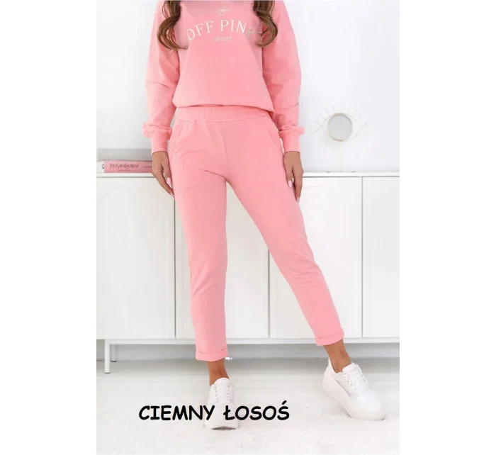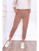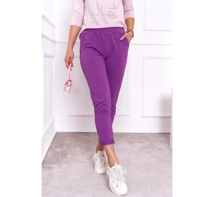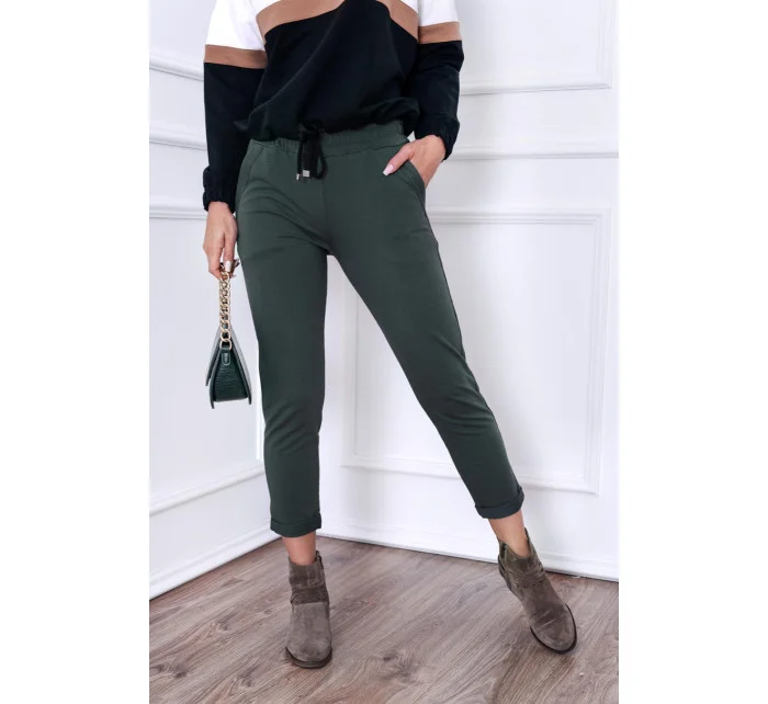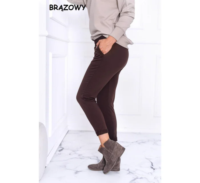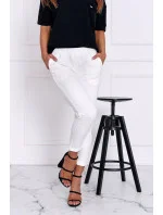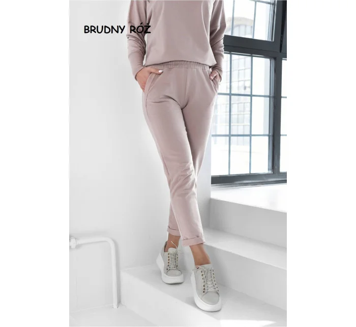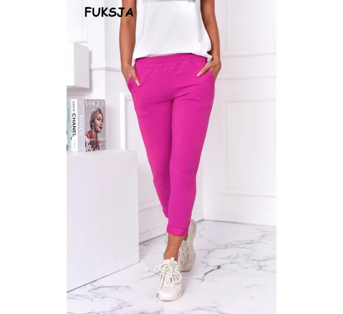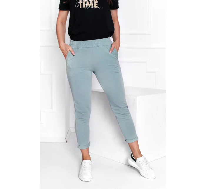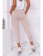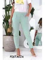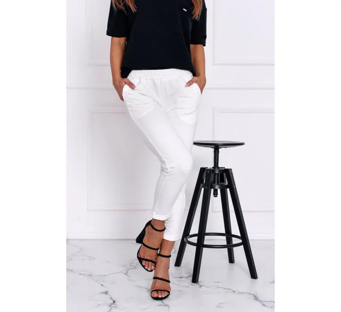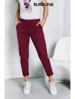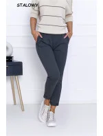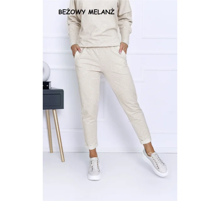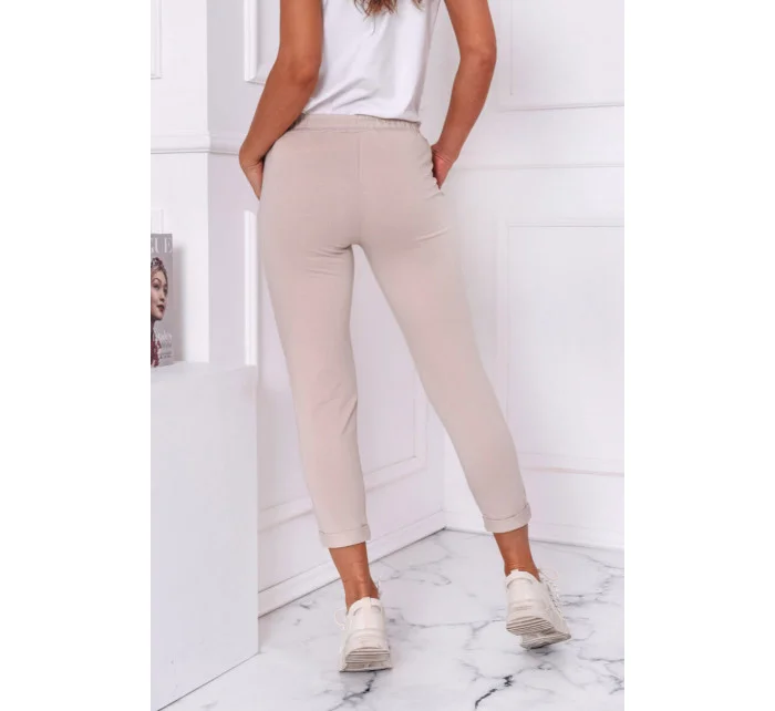Kalhoty mají nohavice v 7/8 délce. Spodní okraj nohavic je ohrnutý. Ve přední části modelu jsou dvě kapsy. Zadní díl kalhot je hladký.