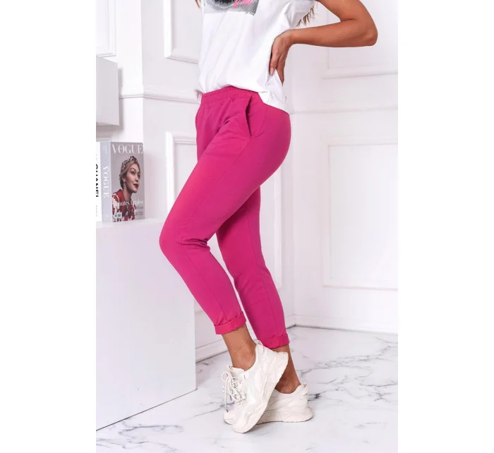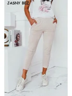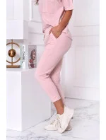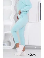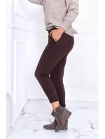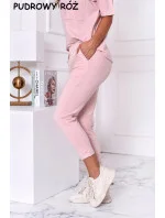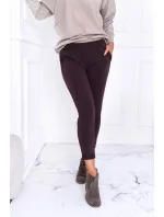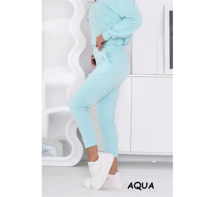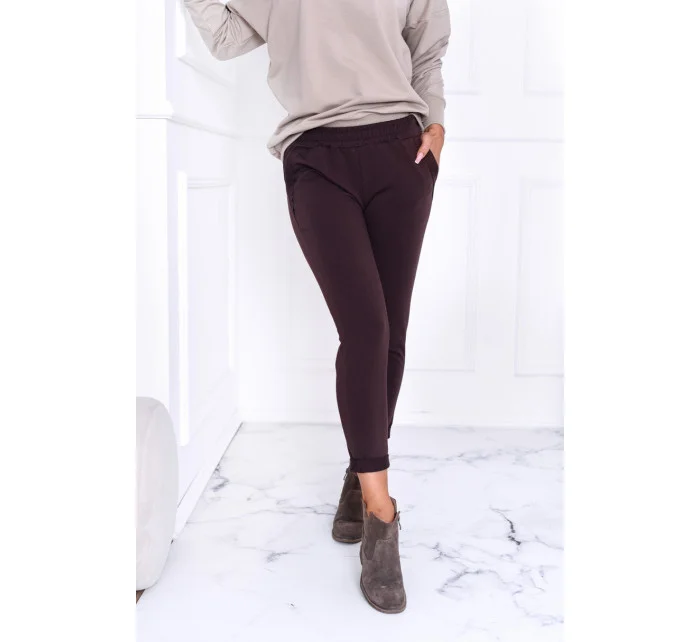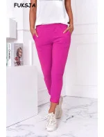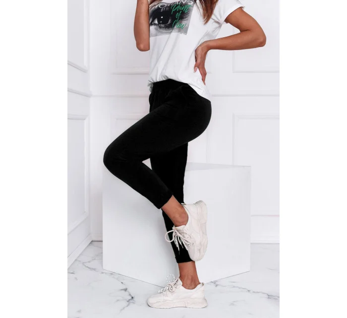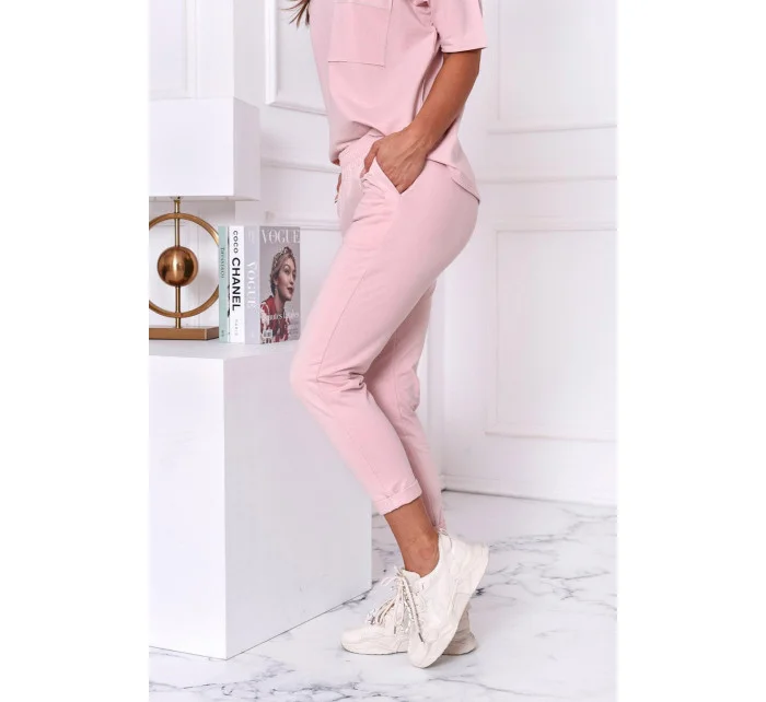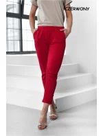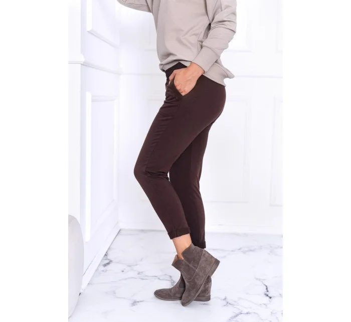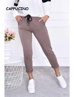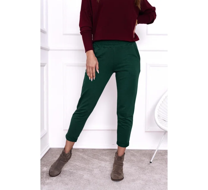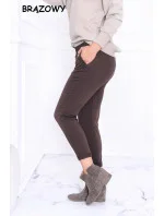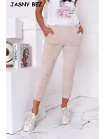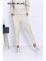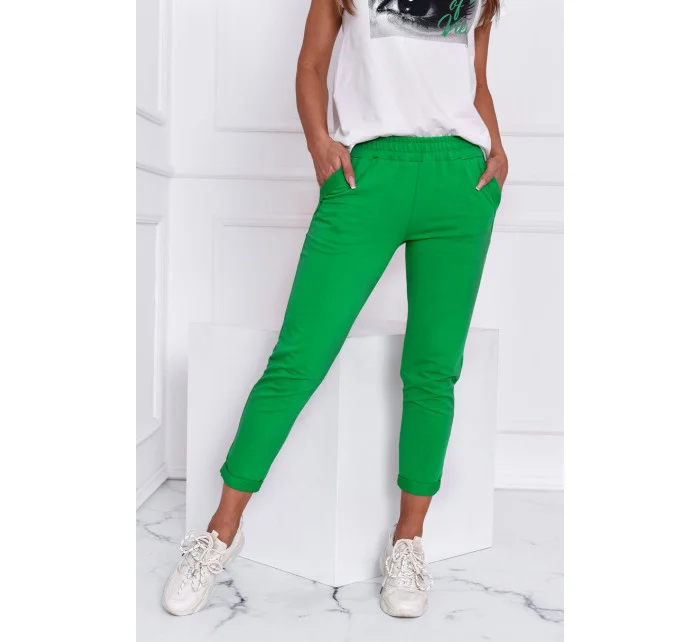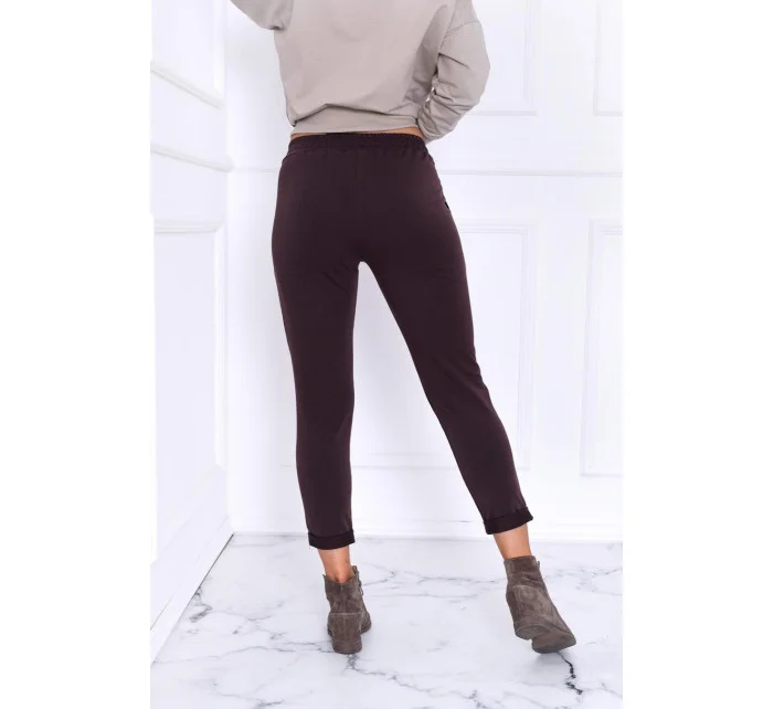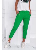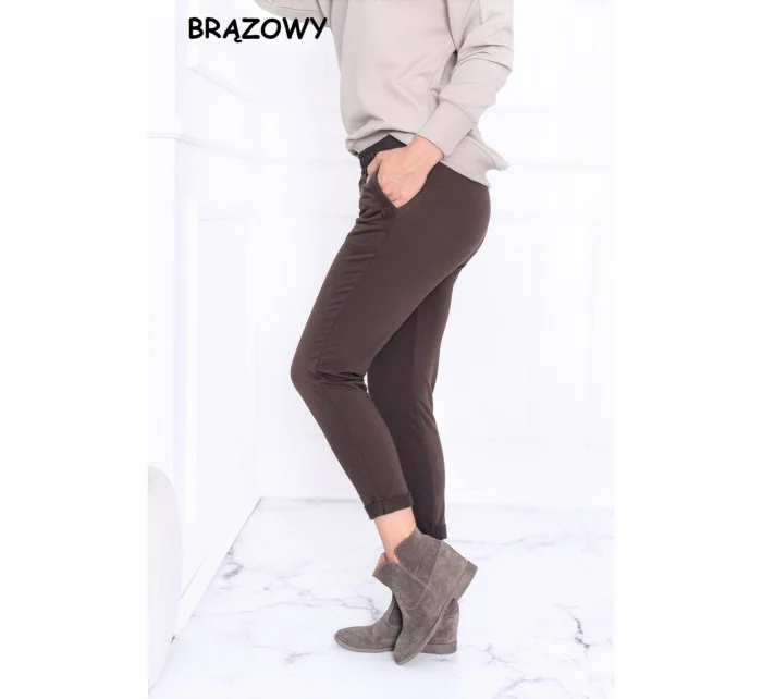 Kalhoty mají nohavice v 7/8 délce. Spodní okraj nohavic je ohrnutý. Ve přední části modelu jsou dvě kapsy. Zadní díl kalhot je hladký.