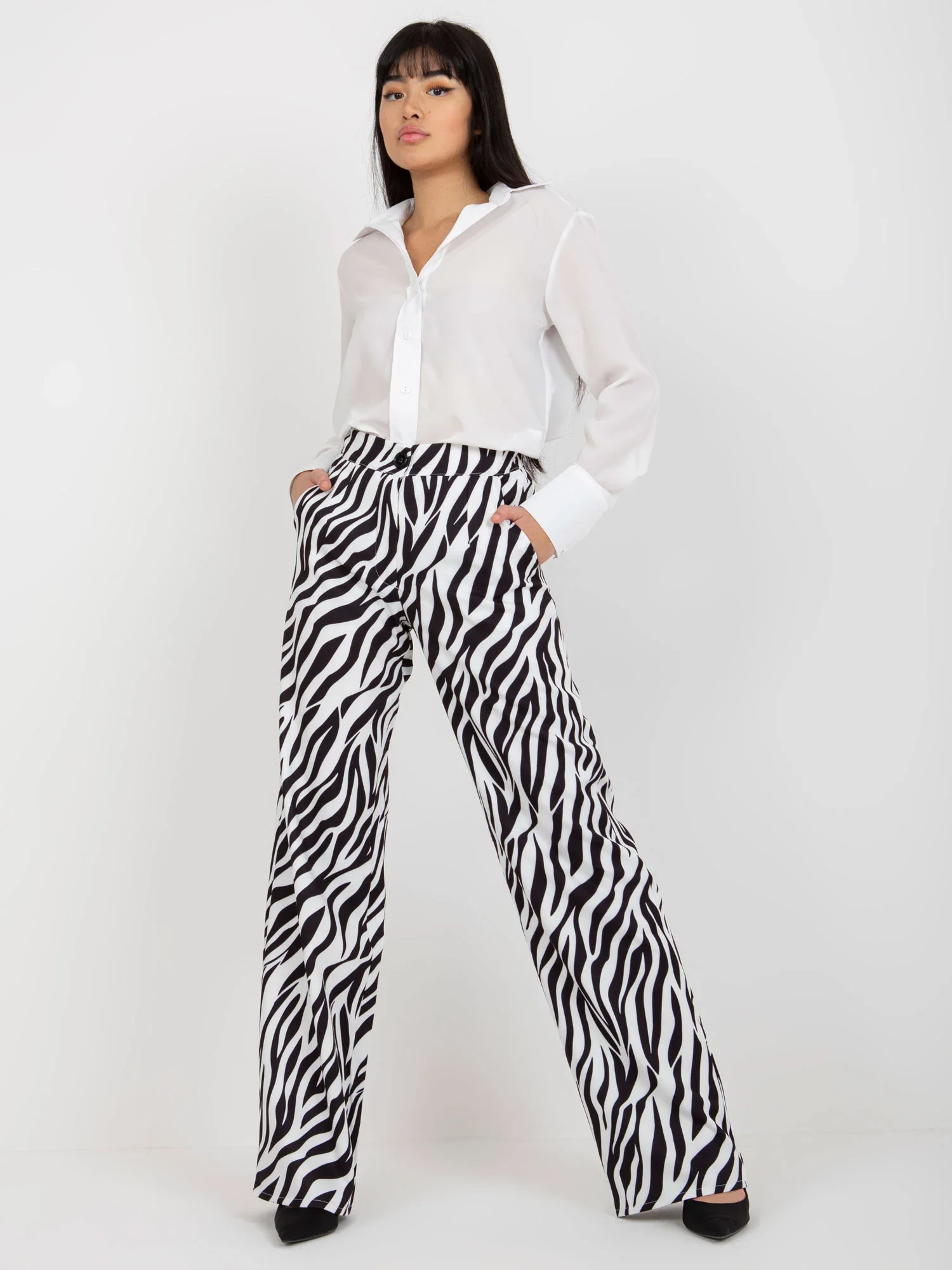 Černobílé kalhoty se širokými nohavicemi ze zebří látky .