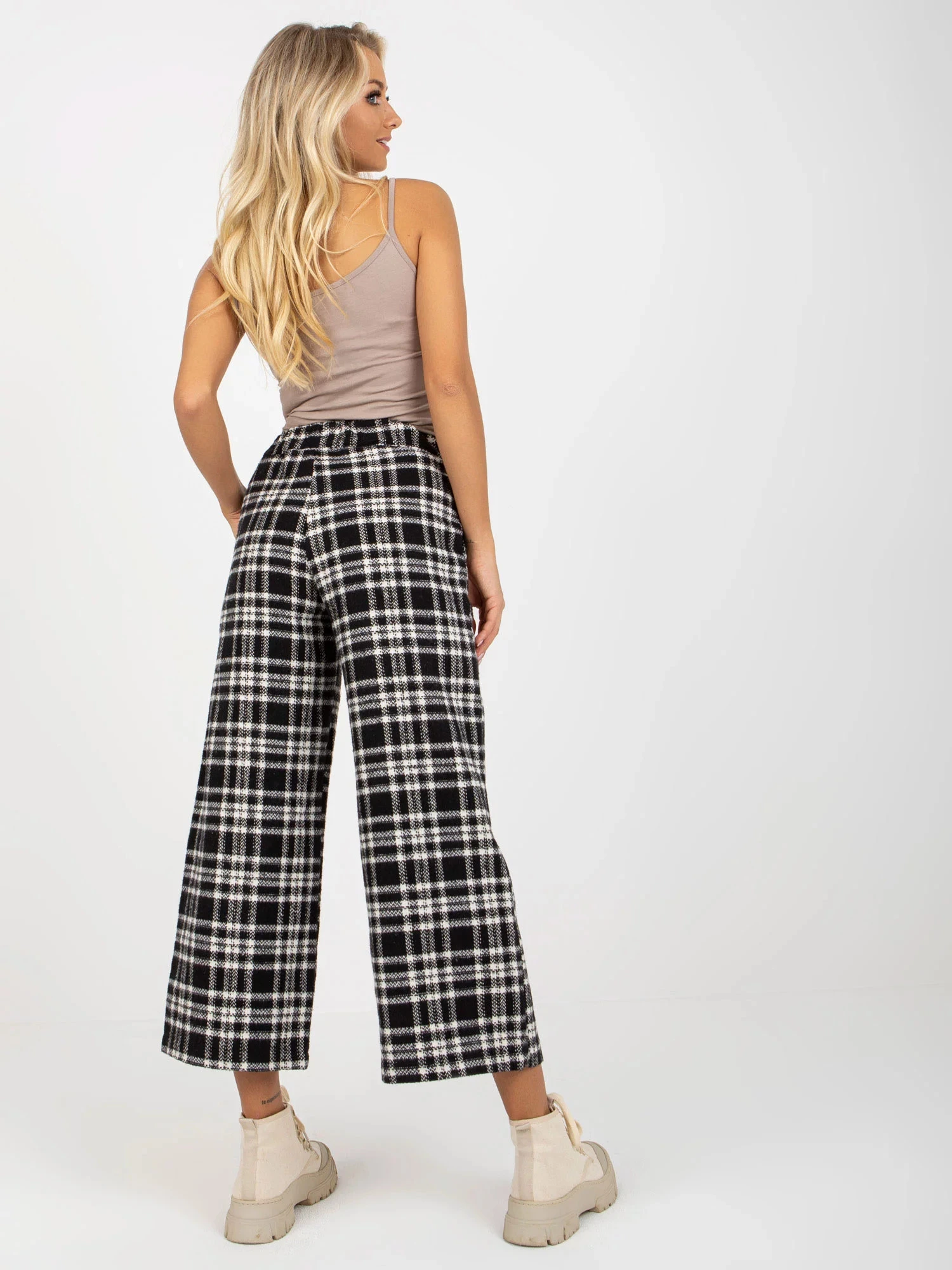 Černé kostkované kalhoty culotte .