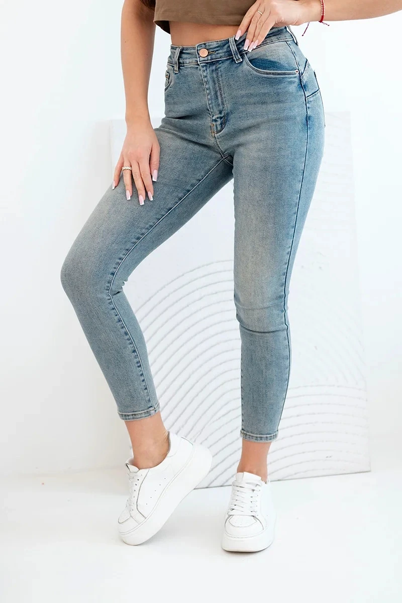 Dámské džíny s push-up efektem jsou nezbytností v šatníku každé ženy, která si cení pohodlí a módního vzhledu. Model s středním pasem krásně zvýrazňuje pas a zajišťuje každodenní komfort nošení. Klasický modrý denim s jemnými oděrkami dodává kalhotám stylový, mírně vintage charakter. Ideální pro každodenní styling – skvěle se hodí jak k volnému tričku, tak k elegantní košili.