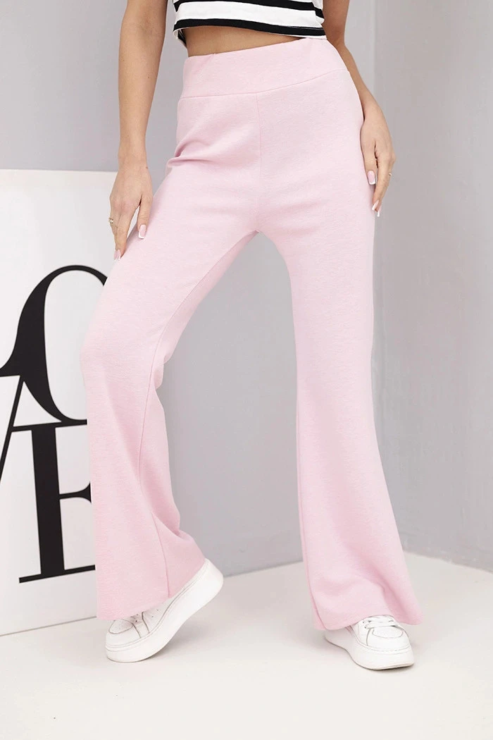 Dámské kalhoty máslíčko s rozšiřující nohavicí světle růžové