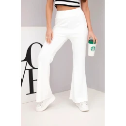 Dámské kalhoty máslíčko s rozšiřující se nohavicí ecru