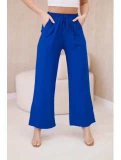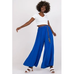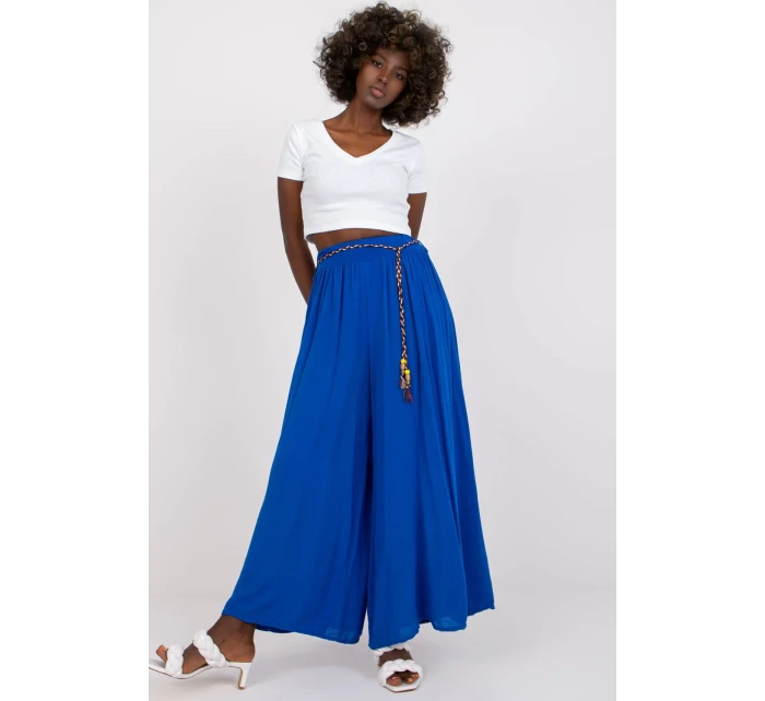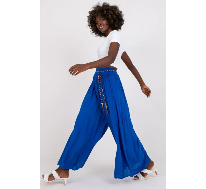 Viskózové kalhoty s vysokým pasem a elastickým pasem. Kalhoty se širokými nohavicemi, ozdobný pásek na zavázání.