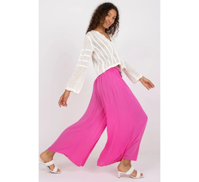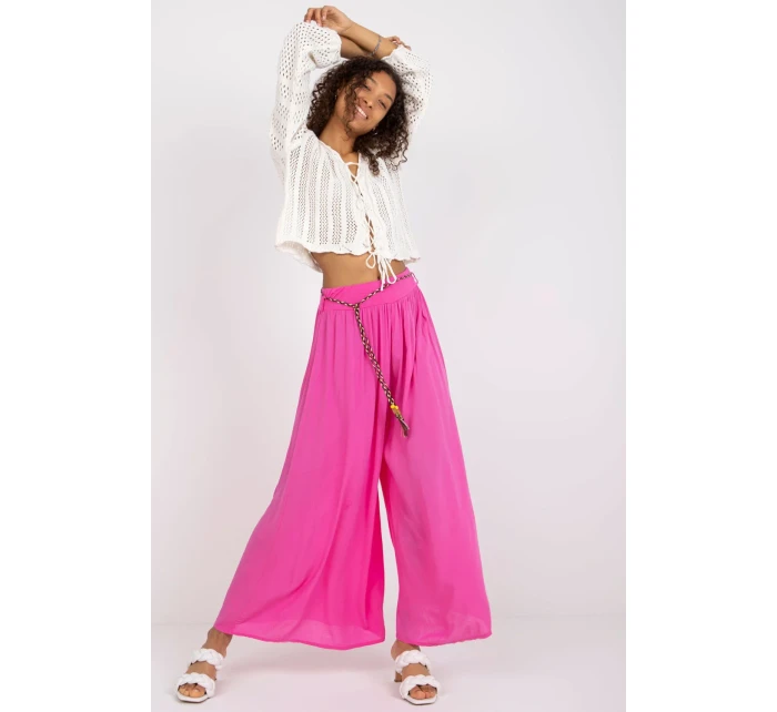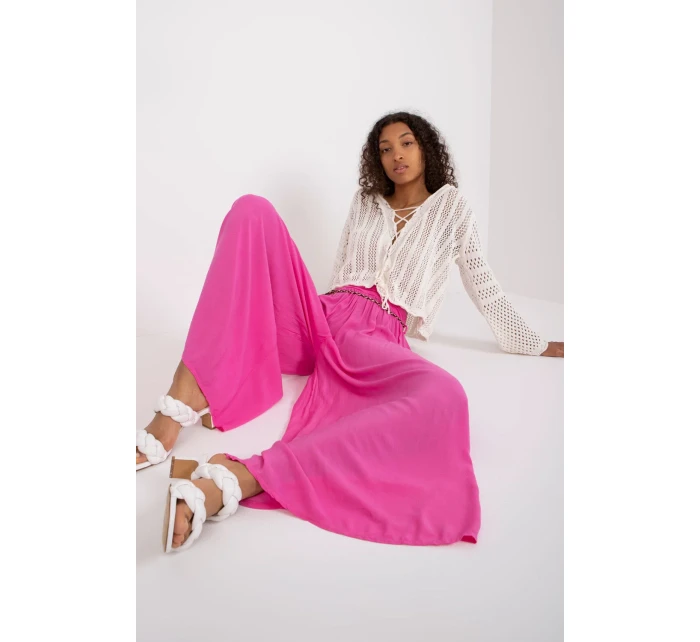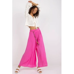 Materiálové kalhoty se širokými nohavicemi, v pase na gumu. Kalhoty s ozdobným páskem.