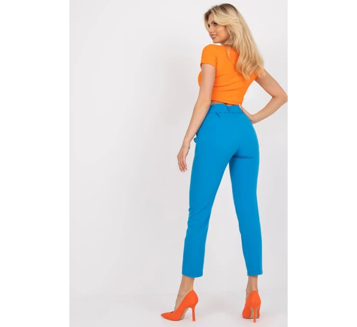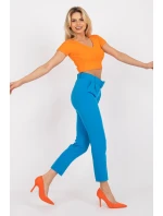Dámské kalhoty s vysokým pasem, zipem a knoflíky. Kapsy na bocích. Pás je součástí dodávky.