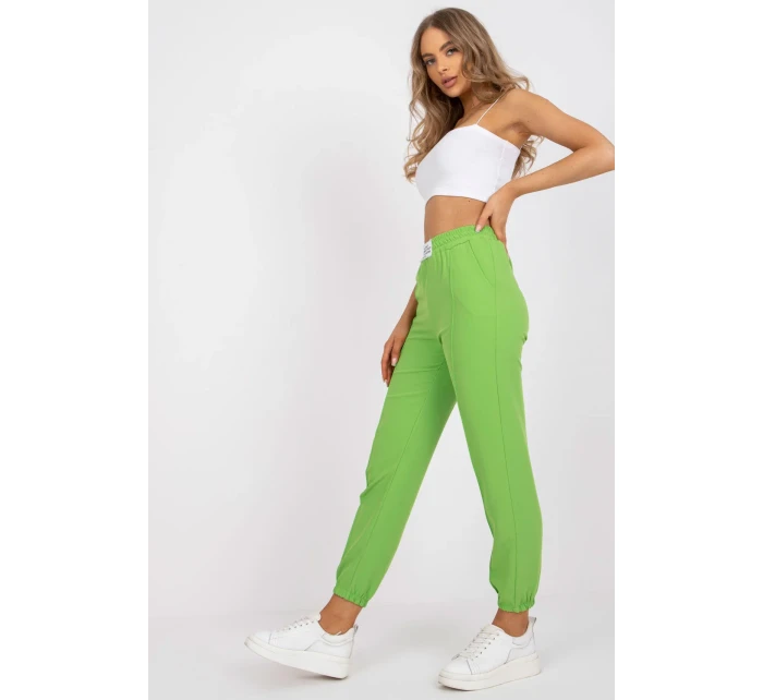 Dámské látkové kalhoty s elastickým pasem. Kalhoty s vysokým pasem a bočními šikmými kapsami.